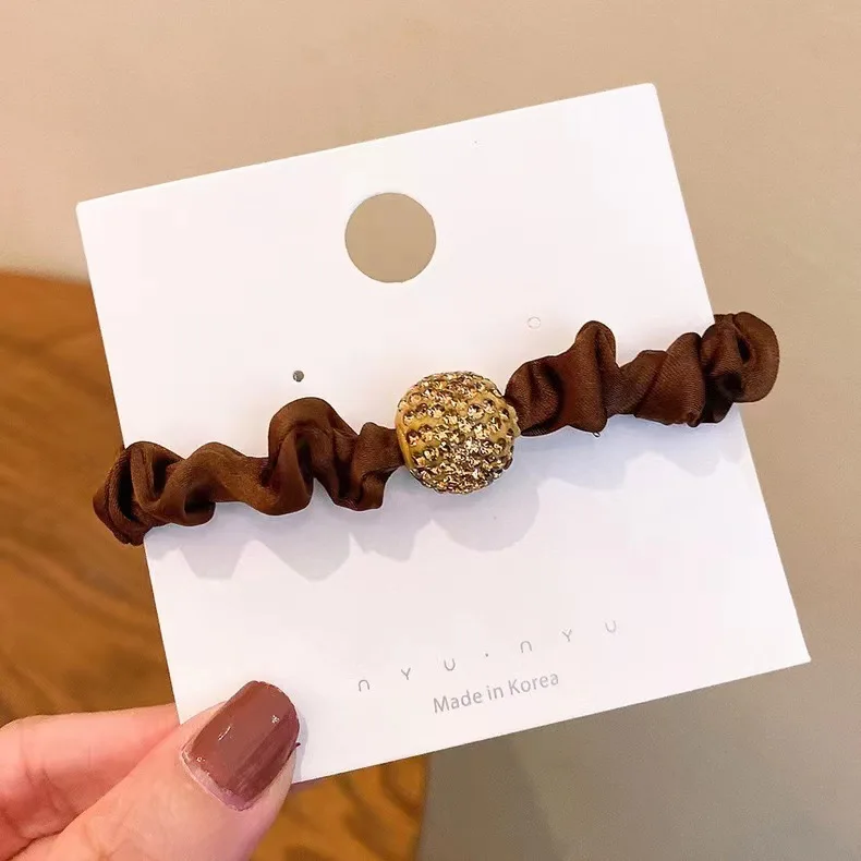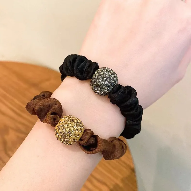 Anillos para el cabello de intestino delgado con diamantes de imitación de estilo coreano, gomas para el cabello de alta elasticidad para mujer, lazos para el cabello con diamantes de imitación de lujo.