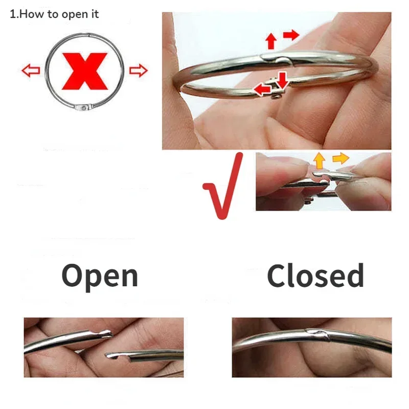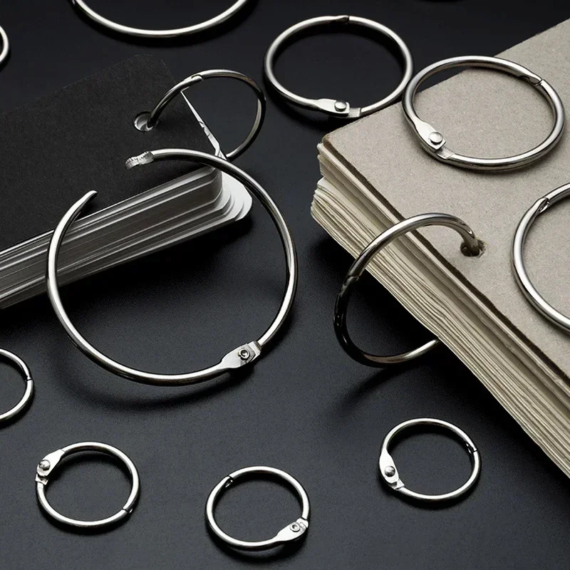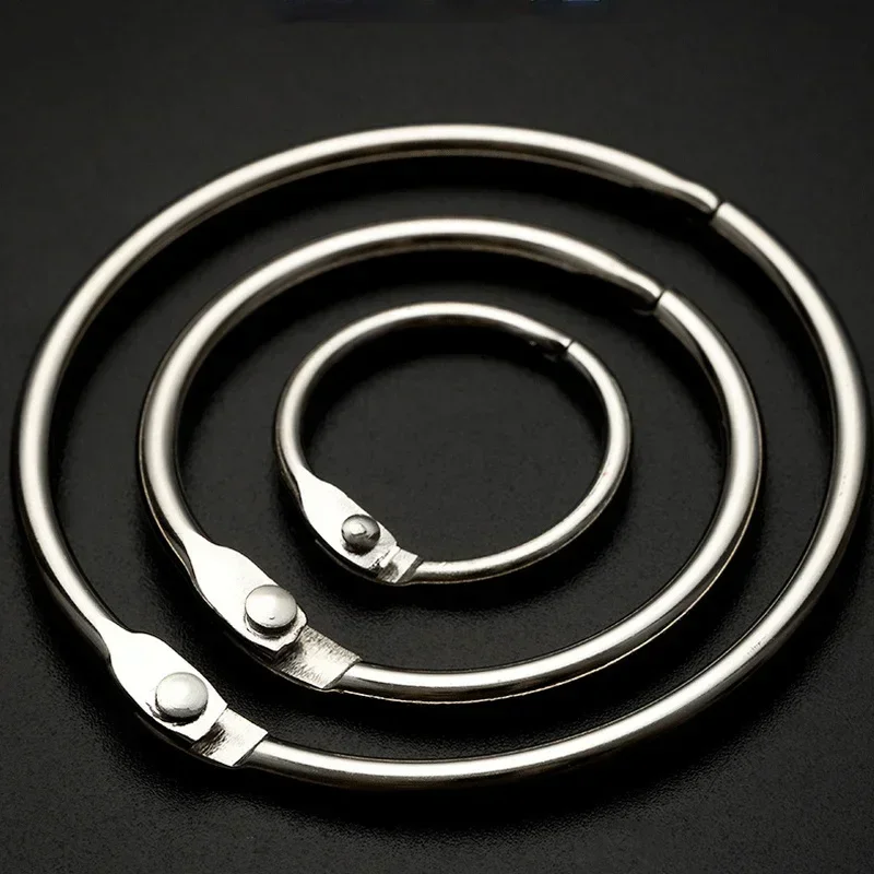 Anillos de Metal para cuaderno de 20 - 50mm, carpeta dorada con bisagras, aros circulares de apertura de hojas sueltas para escuela, álbum de recortes y oficina, 10 Uds.
