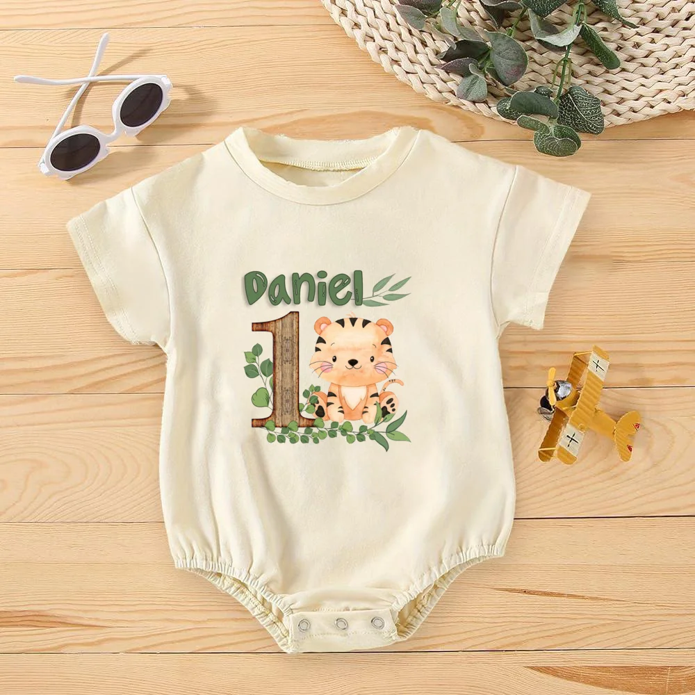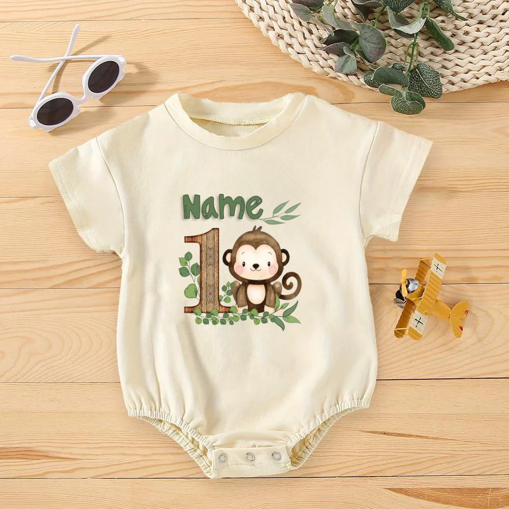 Animal personalizado con nombre, pelele de burbujas para bebé, fiesta de cumpleaños de la jungla, mono de gran tamaño, mono salvaje, regalo de ducha infantil
