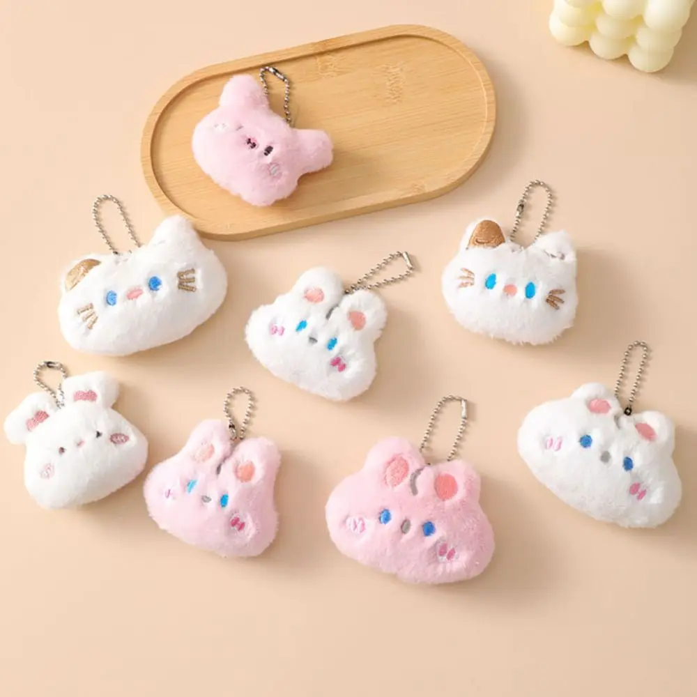 Type: Animal Doll Pendant Color: white/ pink/ green Size: as the pictures show Weight: 13g Material: plush Features: 1.Brand new and high quality. 2.Cute plush toy keychain pendant cartoon stuffed animals. Package Include: 1x Animal Doll Pendant Notes: The product may have an error of 1-2cm,and the color may look a little different from the picture,pls understand.