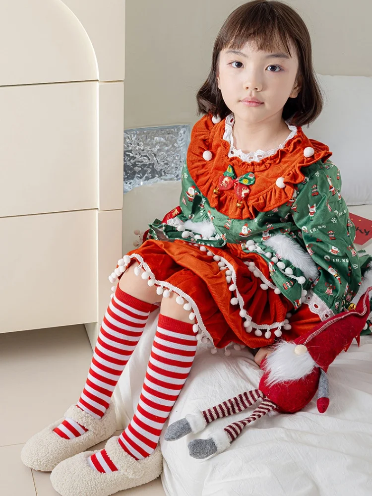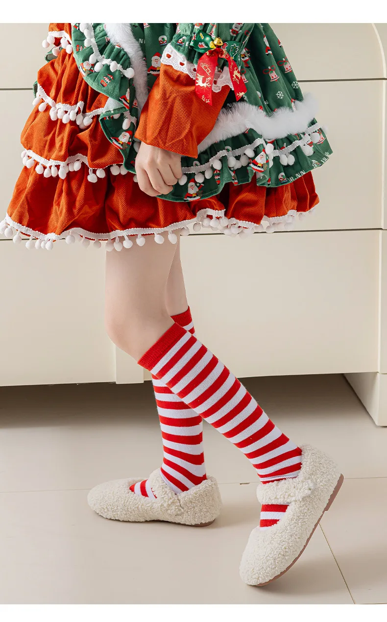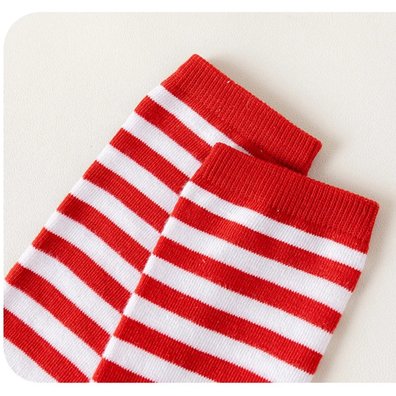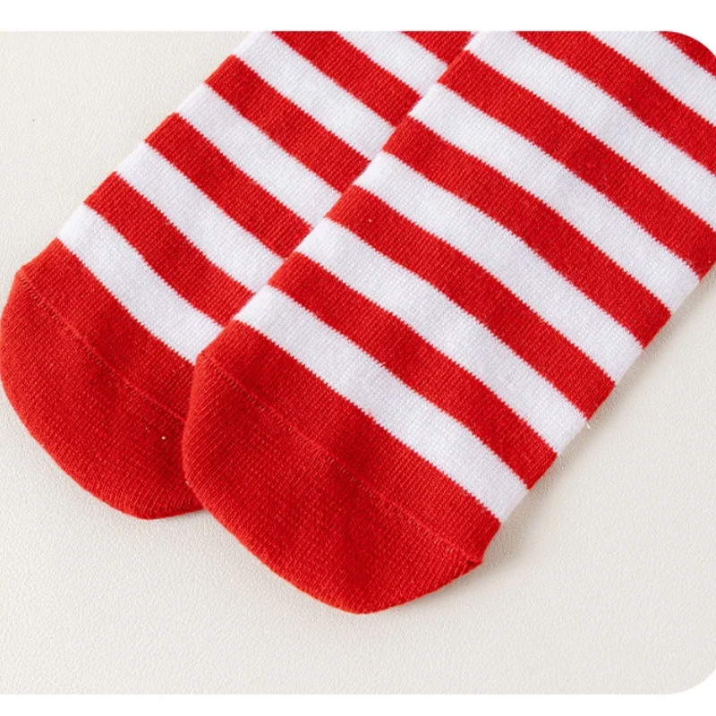 Con clásicas rayas rojas y blancas, los calcetines tienen un fuerte ambiente navideño, perfectos para atuendos navideños, fiestas o como decoración festiva.