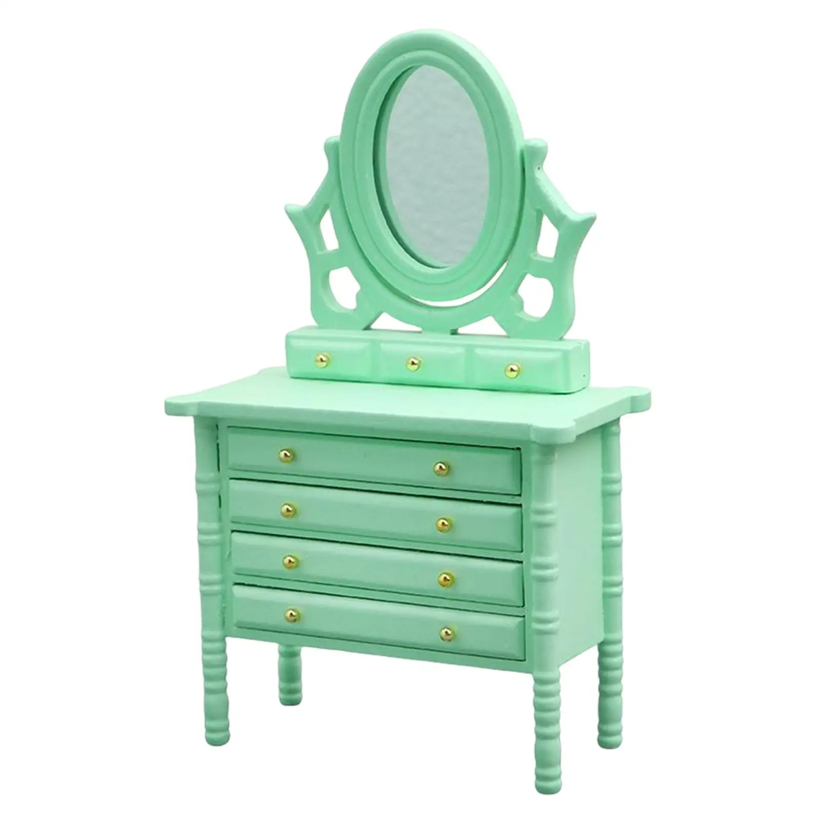 MATERIAL: tocador en miniatura para casa de muñecas hecho de material de madera de alta calidad, construcción robusta, duradera.