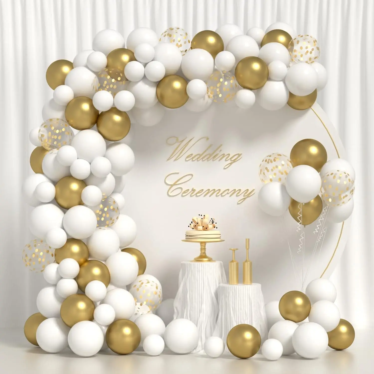 Comprar Arco de guirnalda de Globos de Oro Blanco, confeti blanco y dorado, globos de látex para fiesta, boda, cumpleaños, Baby Showe, 207 piezas, 30 ", 12"
