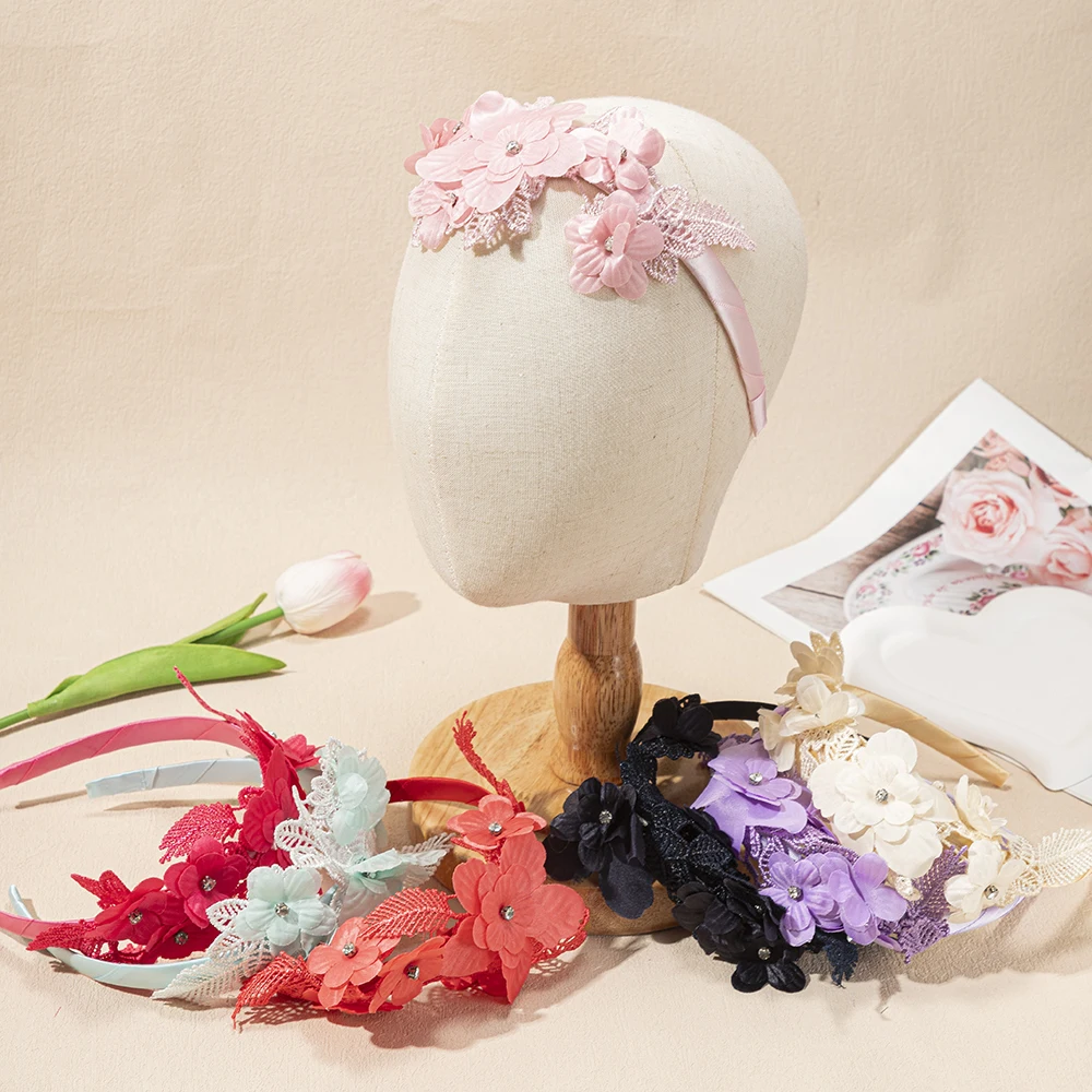 Comprar Aro para el pelo bonito para niños, diademas de flores a la moda para niñas, sombreros sólidos para niños, accesorios para el cabello, accesorios de fotografía