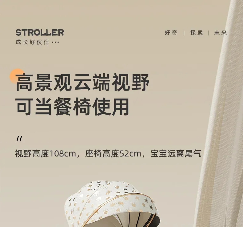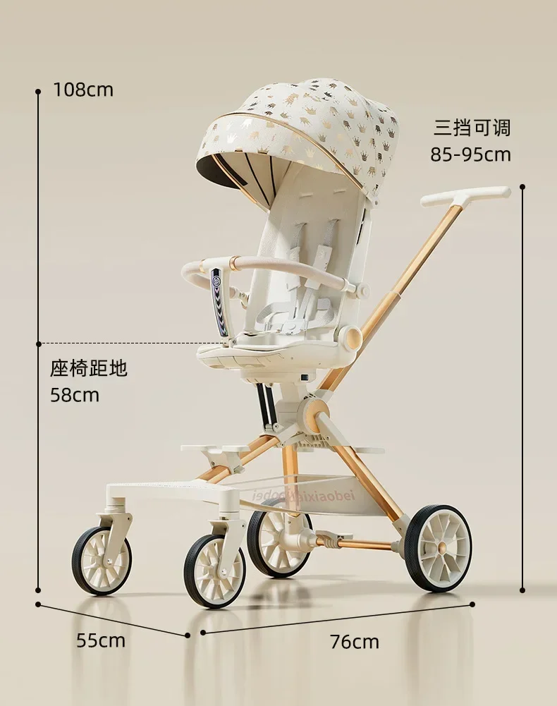 El artefacto para caminar para bebés puede tumbarse plano, pliegue para cochecito, cochecito bidireccional con vista alta, carrito para niños