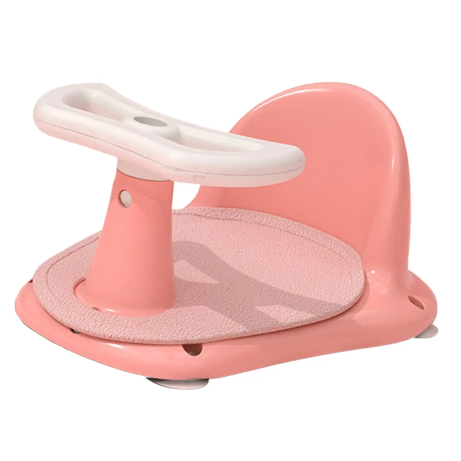 MANGO DE JUEGO DE DIBUJOS ANIMADOS: La parte delantera de la silla de ducha está diseñada con asa giratoria, lo que permite que el bebé juegue mientras se baña, calmando las emociones del bebé y facilitando el baño.