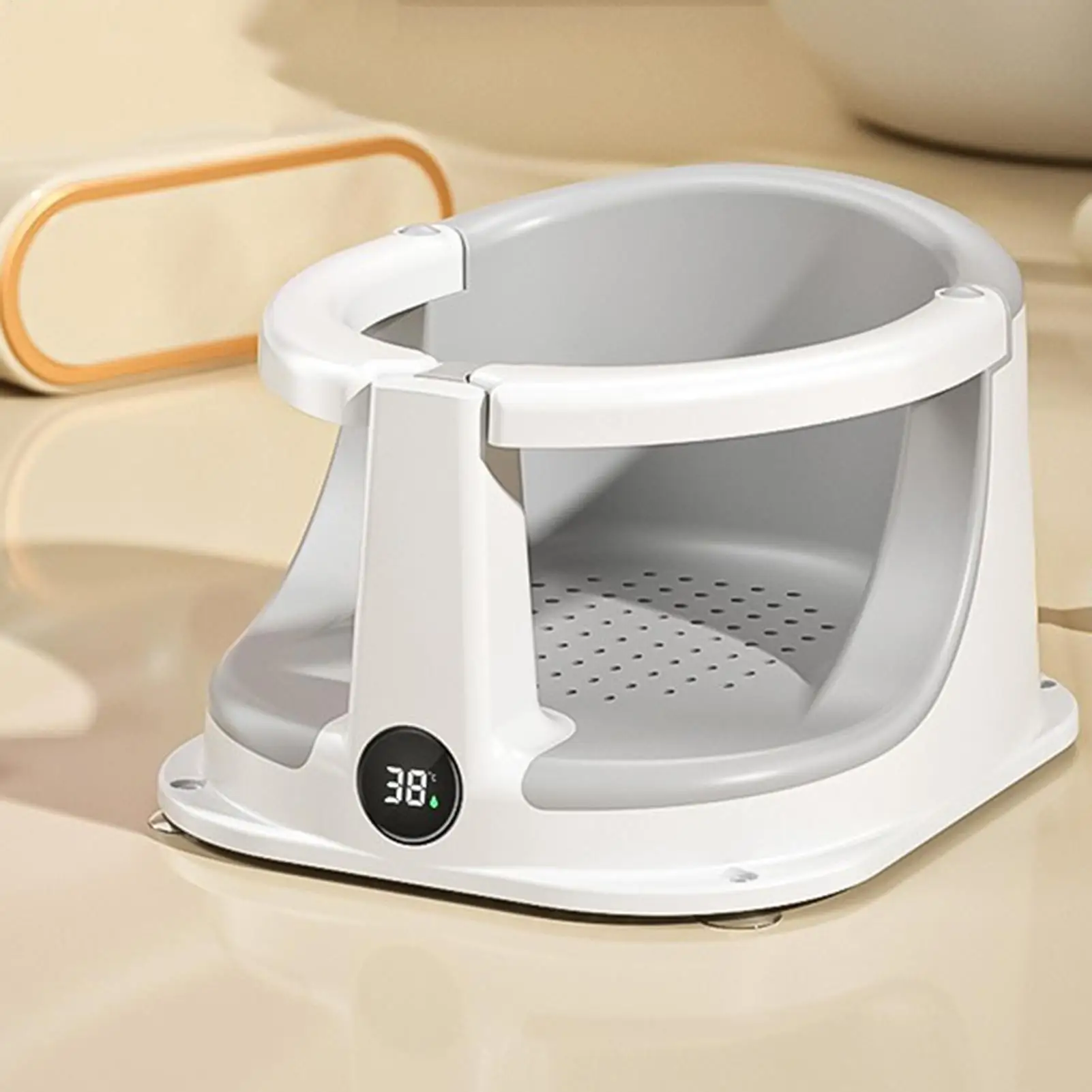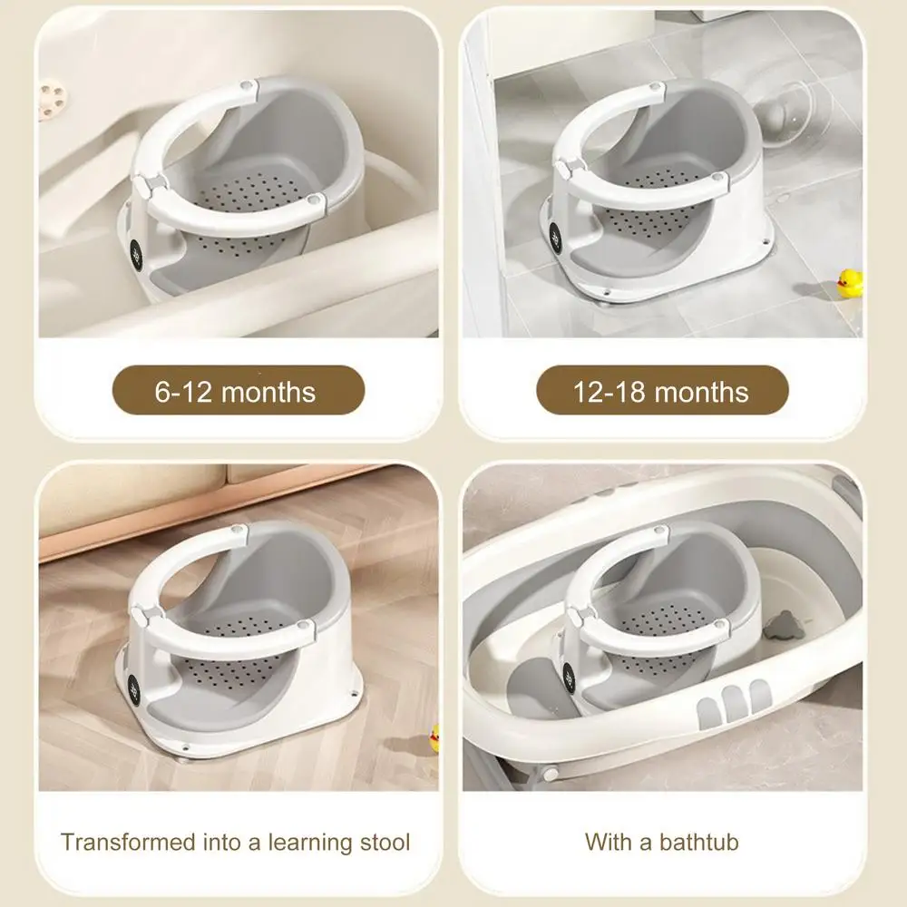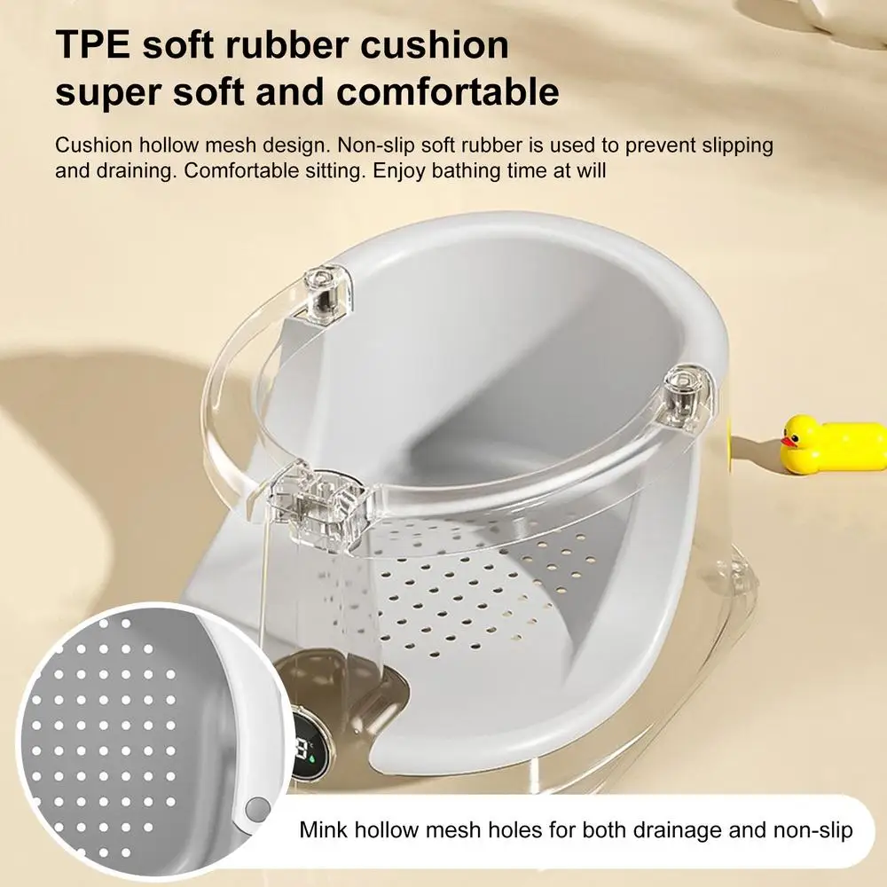 2. Experiencia de baño cómoda: este asiento de baño para bebé proporciona monitoreo en tiempo real de la temperatura del agua del baño utilizando un sensor incorporado de alta precisión para garantizar que la delicada piel del bebé permanezca protegida para una experiencia de baño relajante.