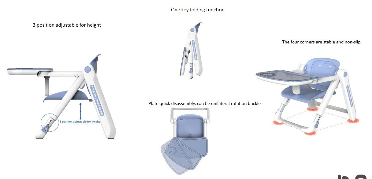 Artículo: Orinal de bebé de nuevo diseño Característica: 1.Una llave plegable con asiento y respaldo. 2.La placa se puede desmontar rápidamente y se puede girar y fijar en un lado. 3.Ajuste de altura de 3iposiciones. 4.El reposabrazos se puede plegar 5.Se puede adaptar a la trona.