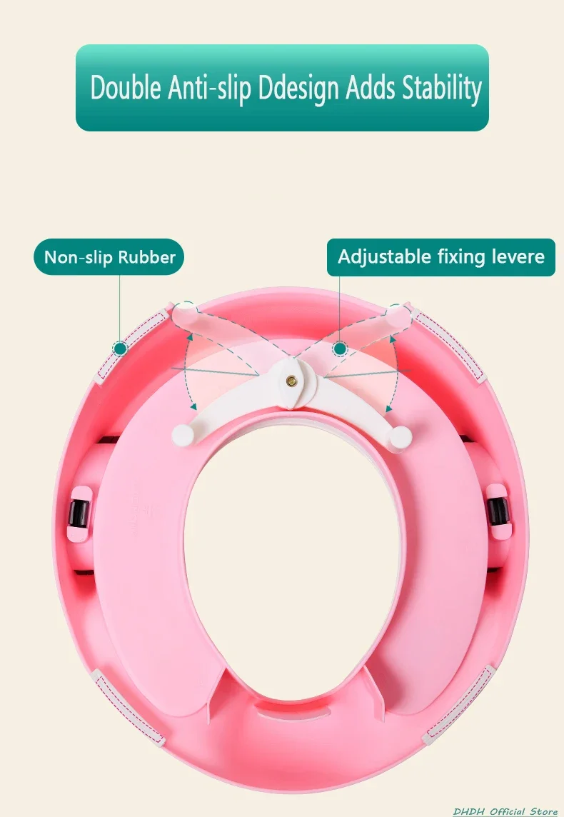 4 tiras antideslizantes en la parte inferior evitan resbalones; Brazos ajustables debajo que evitan que se mueva hacia adelante y hacia atrás; ¡Asas para que los niños se sujeten si están preocupados por caerse!El sistema de protección de 3 niveles hace que los niños se sientan seguros y relajados mientras están sentados en el baño.