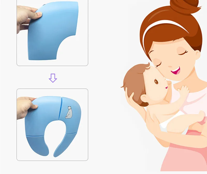 Asiento de baño plegable para niñosPlegable para fácil transporteMamá puede sostener a su bebé con una mano y abrir rápidamente el asiento del inodoro con la otra.