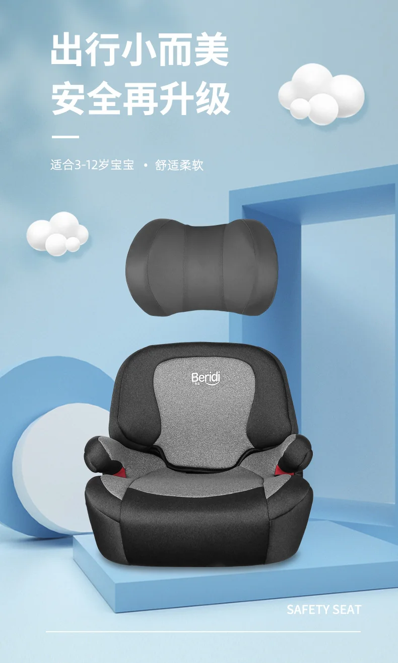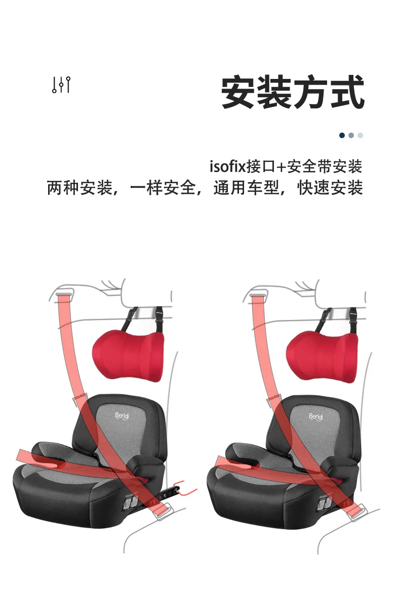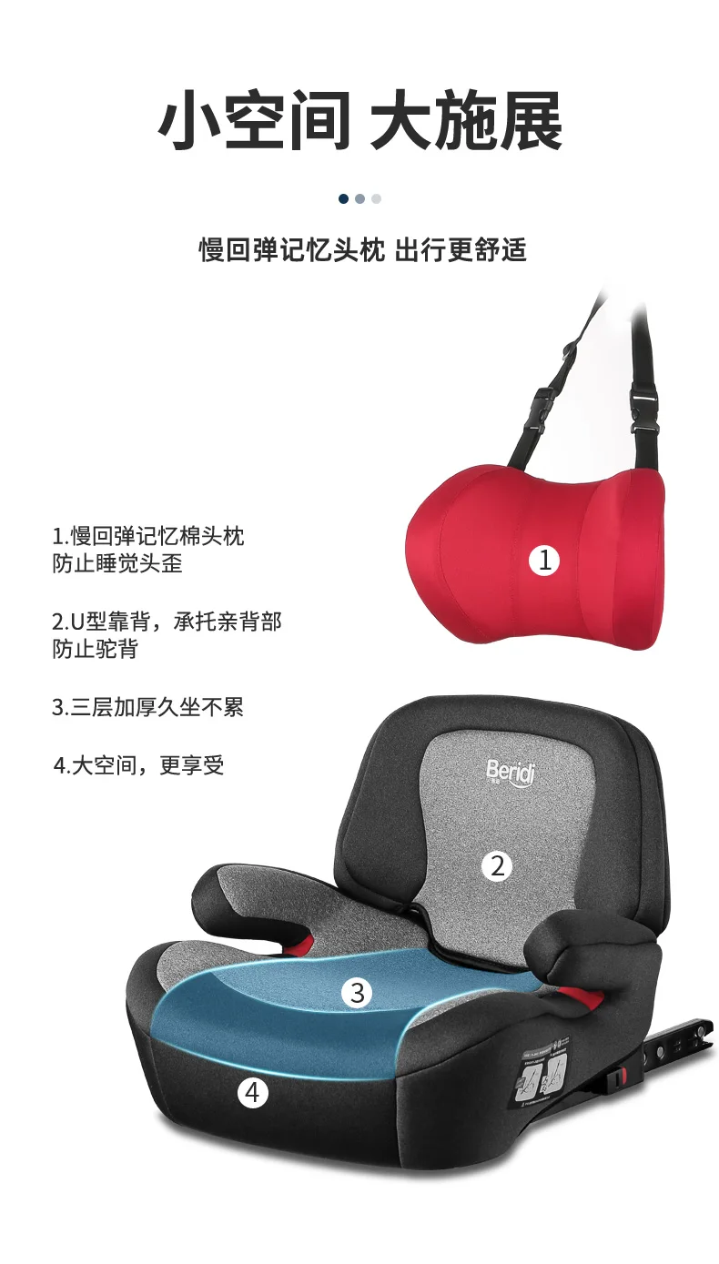 Asiento de seguridad para niños, almohadilla para aumentar la altura, para uso en coche, para niños de 3 a 12 años, cojín de asiento portátil y Simple ISOFIX