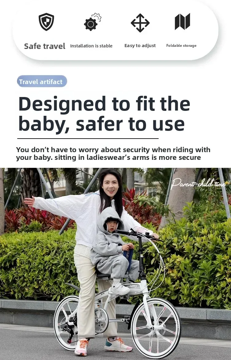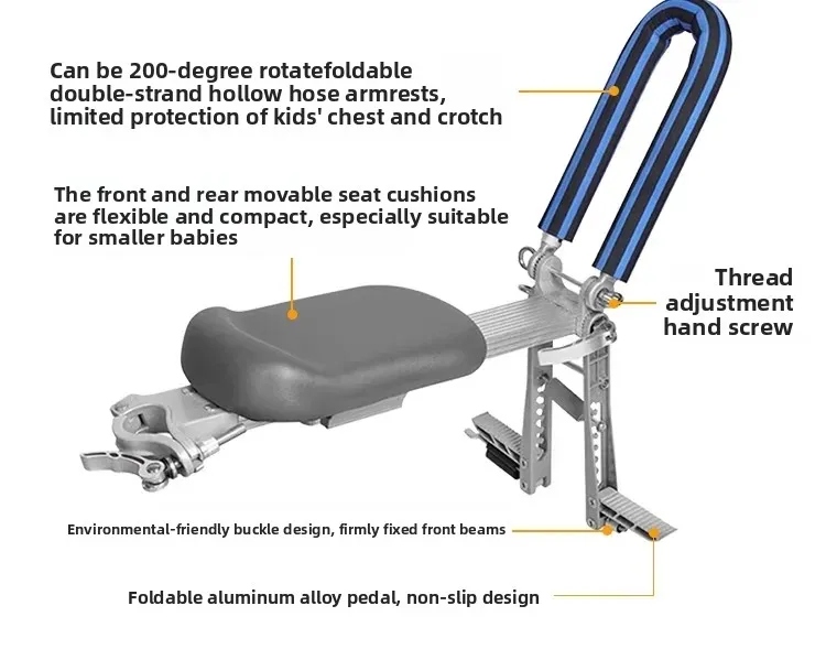 Asiento de seguridad plegable para niños, asiento delantero de aleación de aluminio, diseño ajustable portátil, ajuste Universal para ciclismo seguro con niños