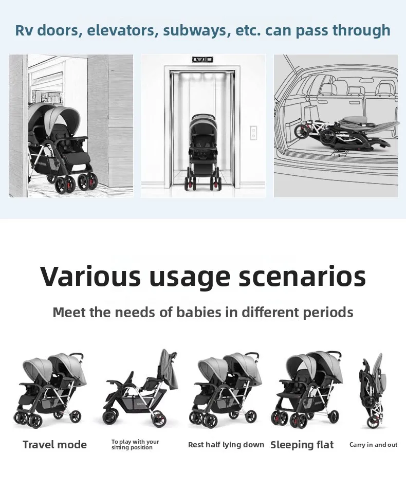Comprar Los asientos delanteros y traseros del cochecito de segundo niño pueden sentarse y acostarse y el tamaño es ligero y pequeño. Doble