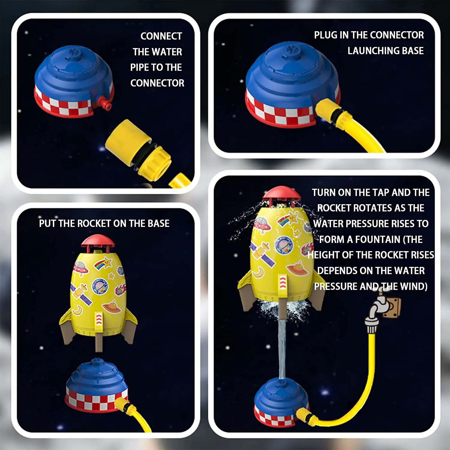 Comprar Aspersor de chorro espacial giratorio, salpicaduras voladoras, juguete para jugar en el agua, lanzador alimentado por agua al aire libre, juguetes de baño para niños STEM