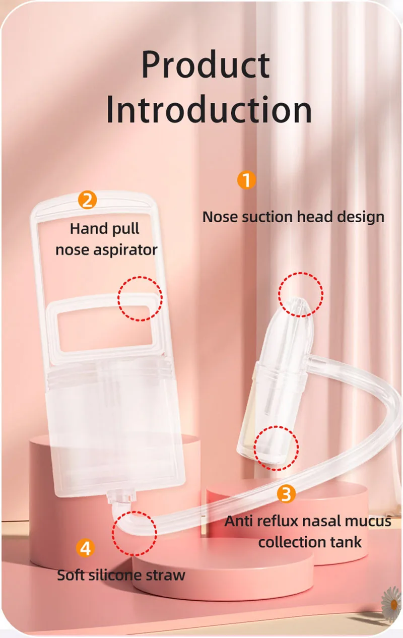 Aspirador Nasal para bebé, presione manualmente el aspirador Nasal, eliminación Manual de muco, Control de flujo de aire unidireccional, ventosa nasal para niños y bebés
