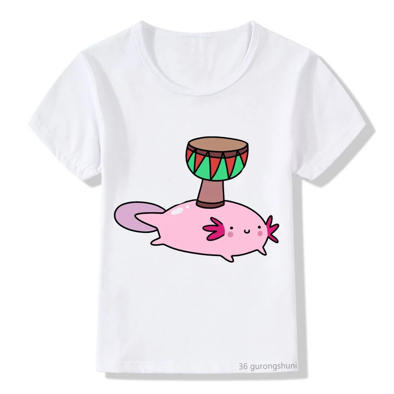 Axolotl-Camiseta con estampado de dibujos animados de Tambor Africano para niños, ropa Kawaii para niños, Tops de verano para niños y niñas, moda nueva al por mayor