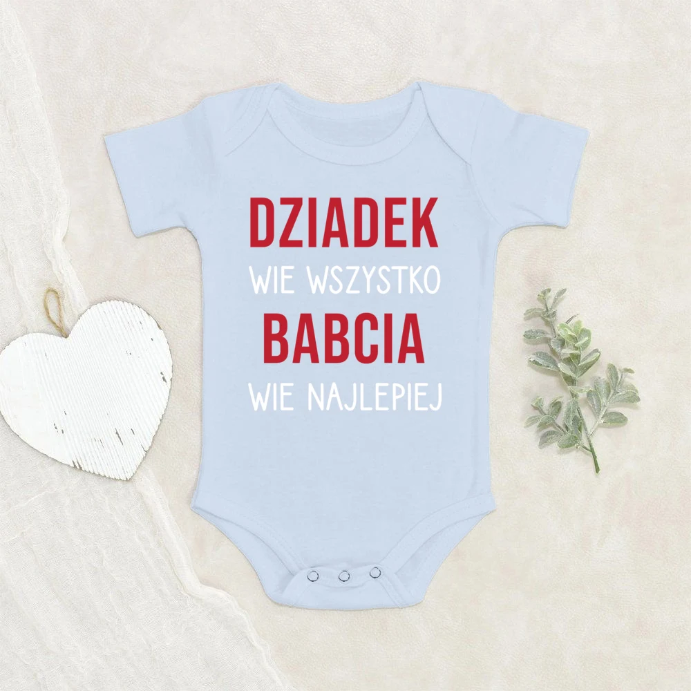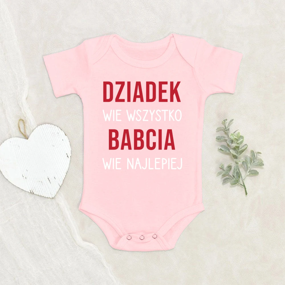 Babcia Wie Wszystko Dziadek Wie Najlepiej, pelele divertido polaco, traje para recién nacido, mono infantil para niños pequeños, regalos para Baby Shower