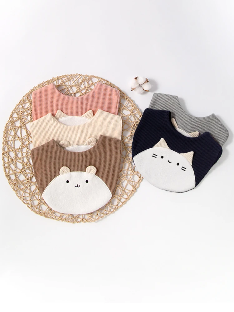 Babero de 2 piezas para bebé, babero de oso de peluche, máscara para recién nacido, vendaje de alimentación, toalla de saliva, accesorios para niño y niña