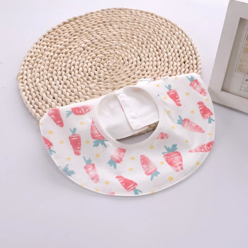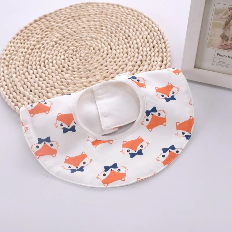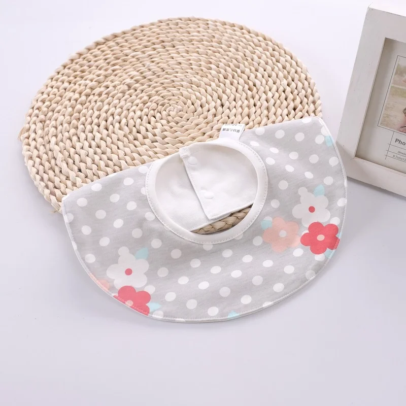 Babero de algodón con dibujos animados para bebé, delantal de alimentación de bebé Pinny redondo de Triple capa con estampado bonito, capa impermeable de TPU sin fluorescencia, 1 ud.