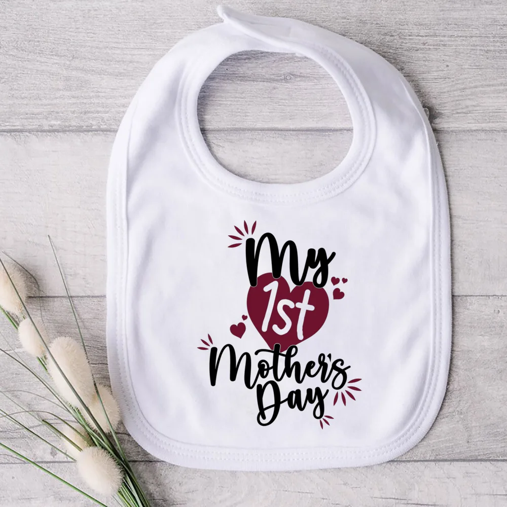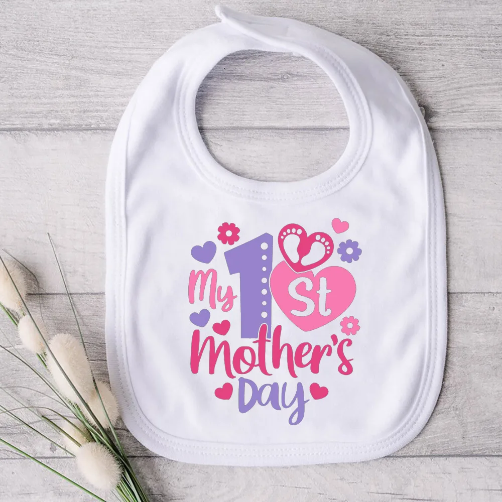 Comprar Babero de algodón con estampado para bebé, ropa para recién nacido, toalla de Saliva Blanca, para fiesta del Día de la madre, mi primer día de la madre