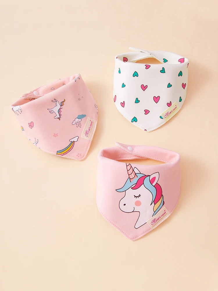 Babero de alimentación para bebé de 3 piezas, hecho de algodón, toalla de agua para la boca, doble capa, suave, cómodo, tamaño ajustable, accesorios de 0 a 3 años