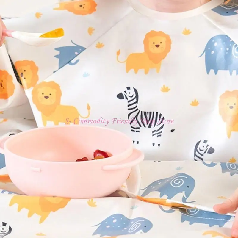 Babero alimentación bebé 85AE con funda para trona, manga larga dibujos animados, delantal lactancia - imagen 3