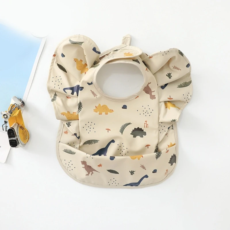 Comprar Babero de alimentación de bebé impermeable, Baberos babeantes para recién nacidos con forma de manga voladora de dibujos animados bonitos con receptor de comida para bebés de 3 a 36 meses, 1 ud.