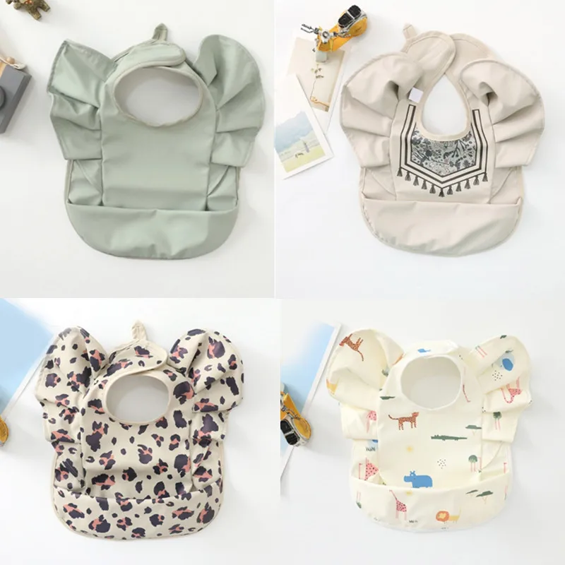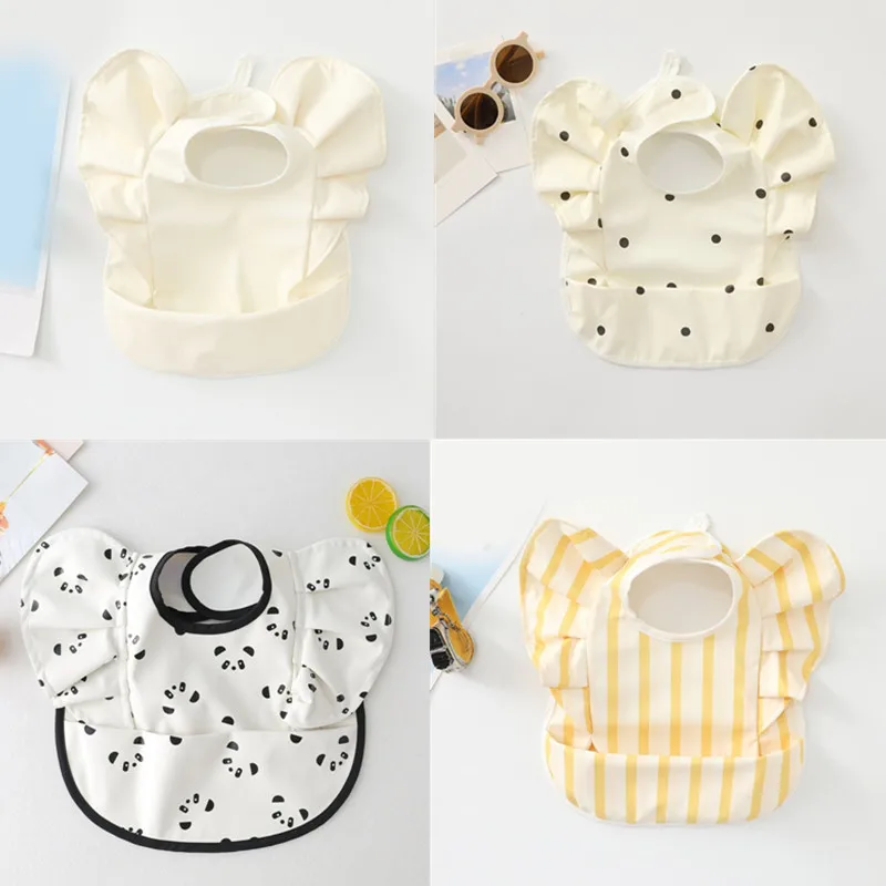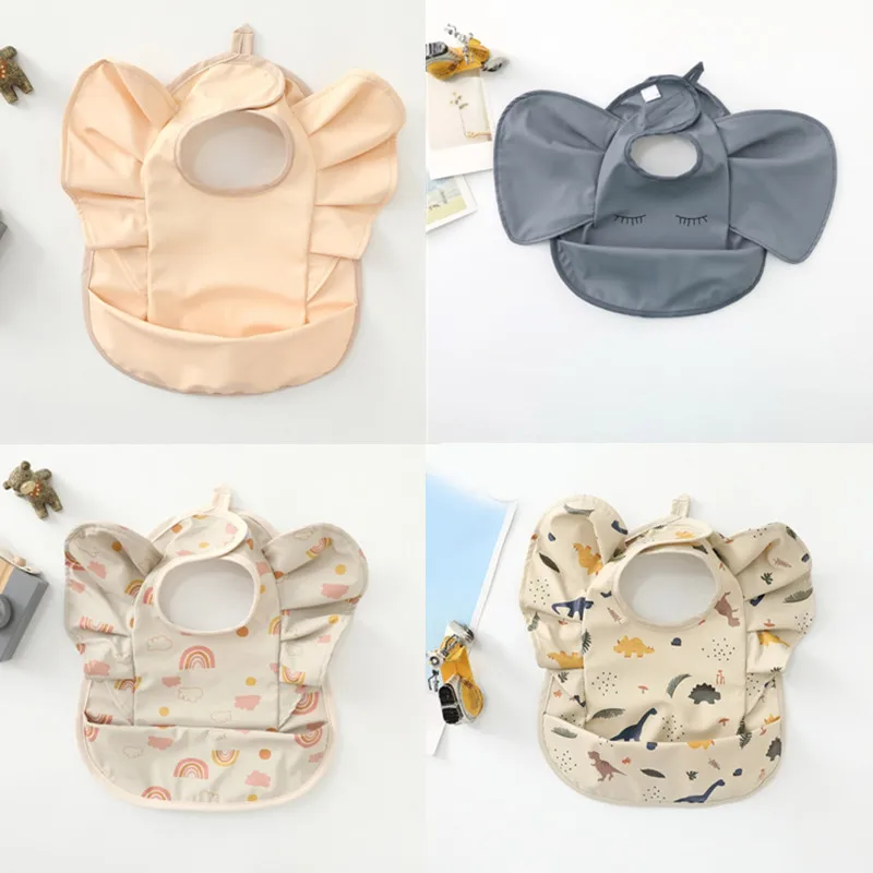 Comprar Babero de alimentación de bebé impermeable, Baberos babeantes para recién nacidos con forma de manga voladora de dibujos animados bonitos con receptor de comida para bebés de 3 a 36 meses, 1 ud.