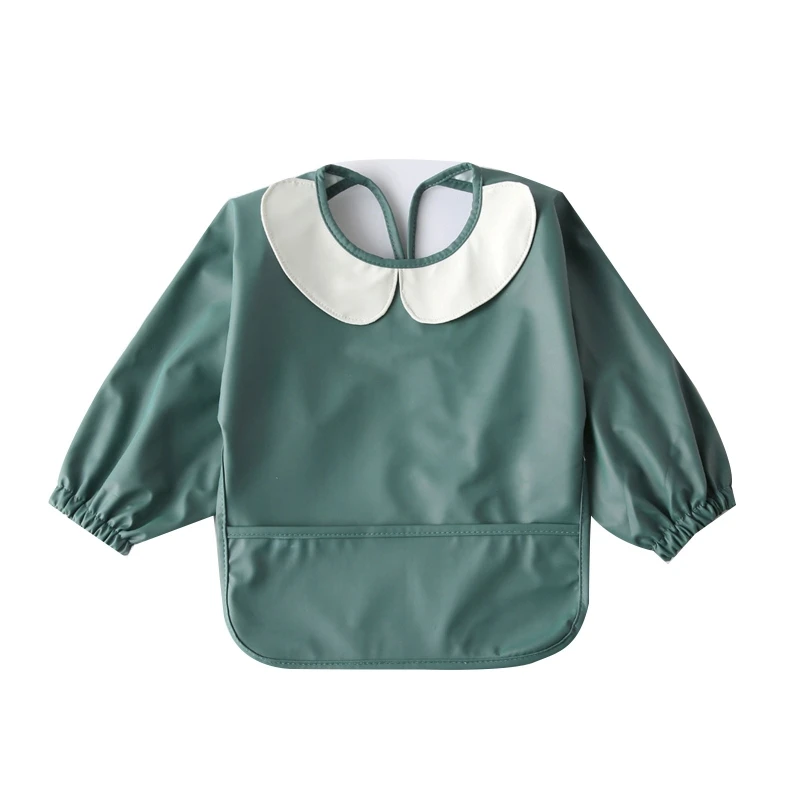 Comprar Babero impermeable con bolsillo para comida para bebé, delantal de manga larga para alimentación, dibujo, pintura, eructo para recién nacido, envío directo
