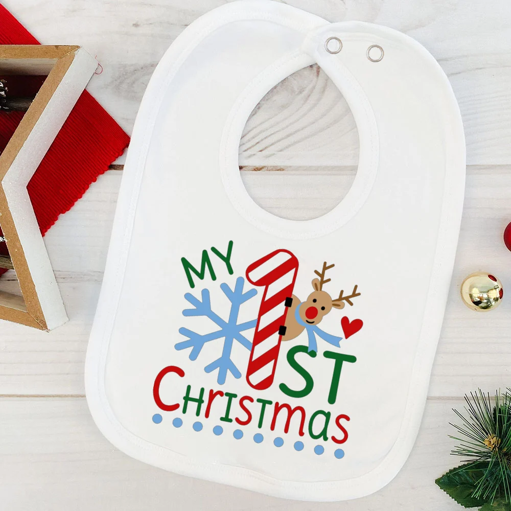 Comprar Babero My First Christmas para bebé, babero de fiesta de Navidad, toalla de Saliva de algodón, ciervo, Papá Noel, muñeco de nieve, estampado, regalo infantil de Navidad