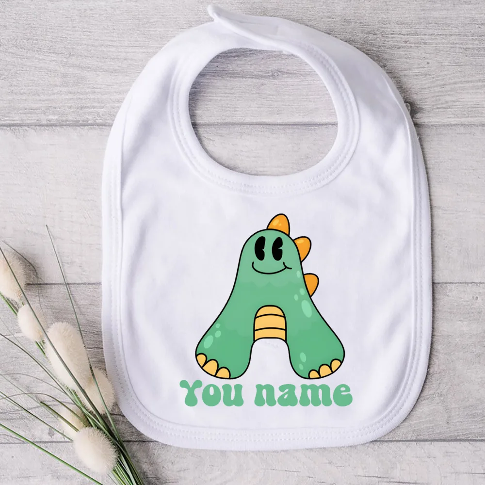 Comprar Babero personalizado para recién nacido con inicial de dibujos animados con nombre, Baberos de algodón para bebé, toalla de Saliva infantil, babero para niño pequeño, bautismo, regalos de ducha infantil