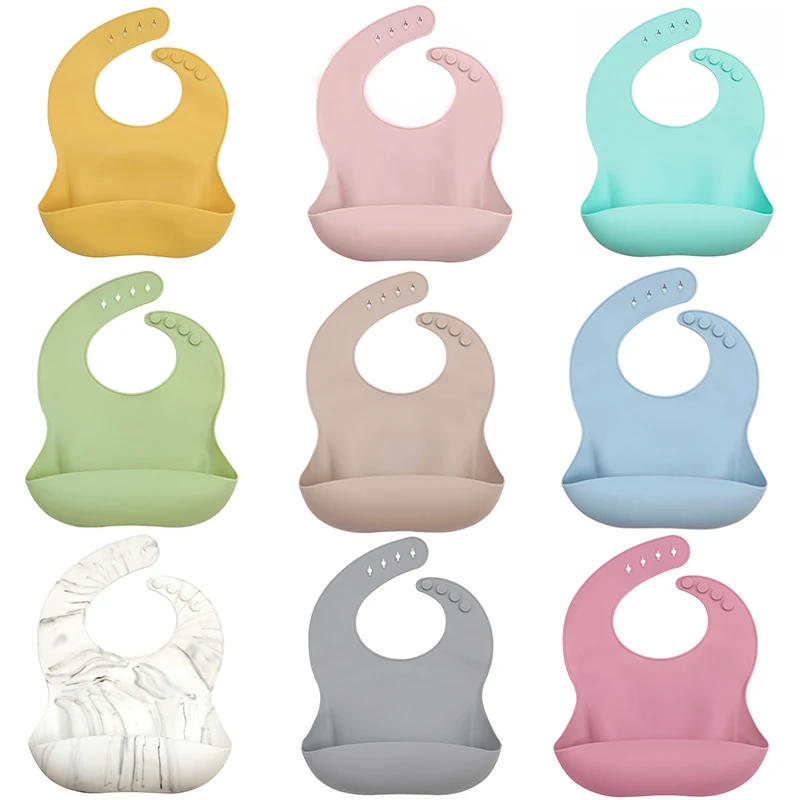 Comprar Babero de silicona de Color para bebé, toalla de Saliva impermeable, producto ajustable de grado alimenticio, sin BPA
