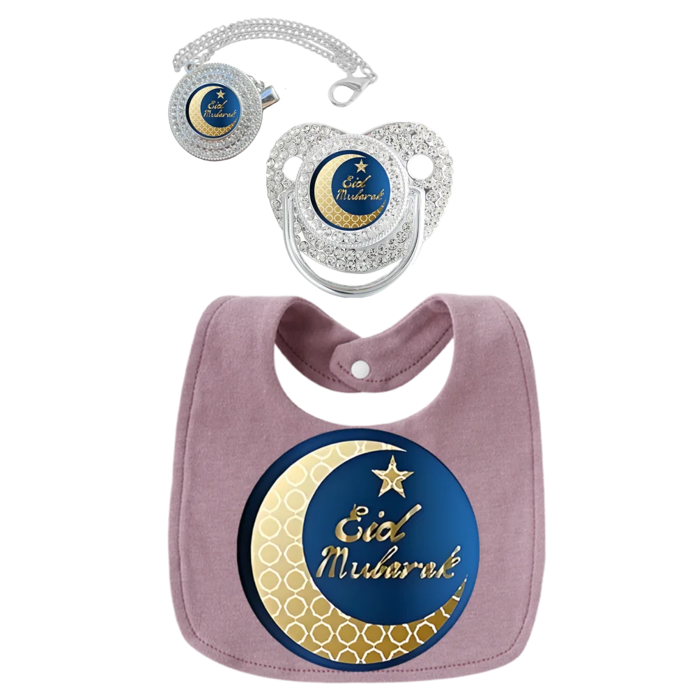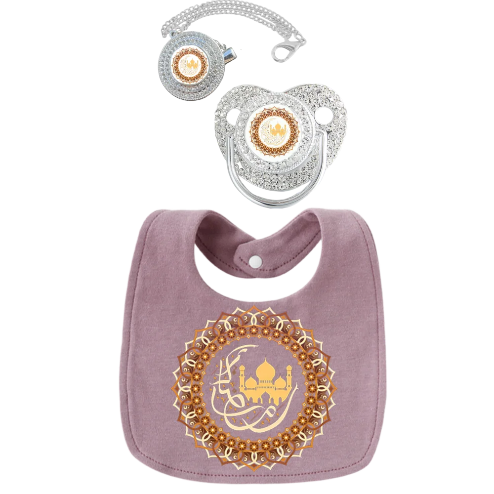 Baberos de algodón 100% puro para bebé, soporte para chupete para masticar y jugar con la boca, toalla para babear musulmana, conjunto de regalo de moda para bebé, regalo para recién nacido