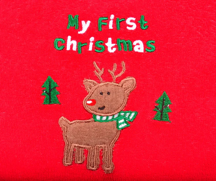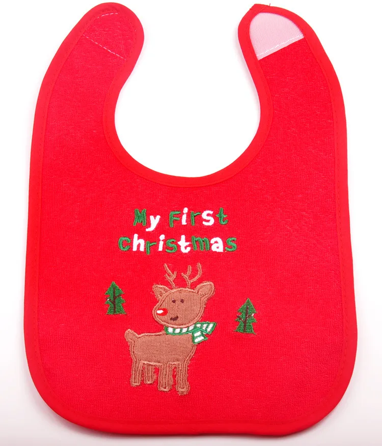 Artículo: Babero navideñoMaterial: poliéster algodónTamaño: 29*19,5 CMEmbalaje: 1 unidad/bolsa100% nuevo y de alta calidadToalla doble, absorción de agua, tacto suave y delicado.Puede resolver el problema de filtración del babero individual.Exquisita tela bordada