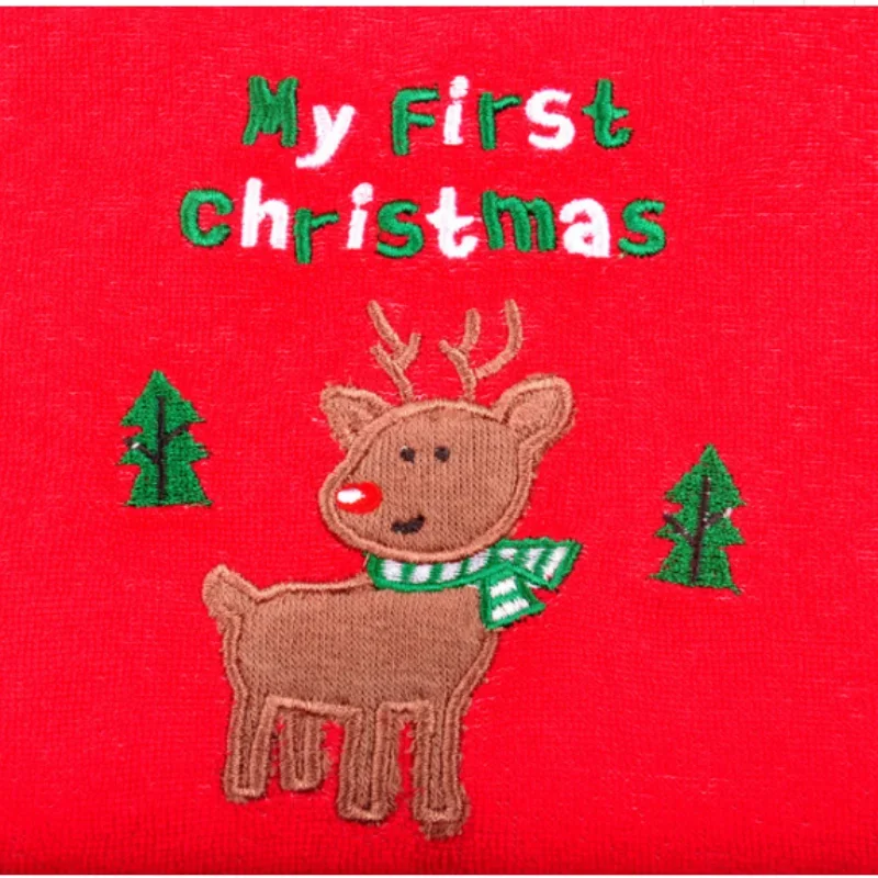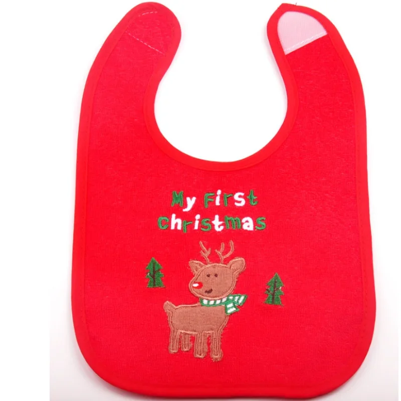 Artículo: Babero navideñoMaterial: poliéster algodónTamaño: 29*19,5 CMEmbalaje: 1 unidad/bolsa100% nuevo y de alta calidadToalla doble, absorción de agua, tacto suave y delicado.Puede resolver el problema de filtración del babero individual.Exquisita tela bordada