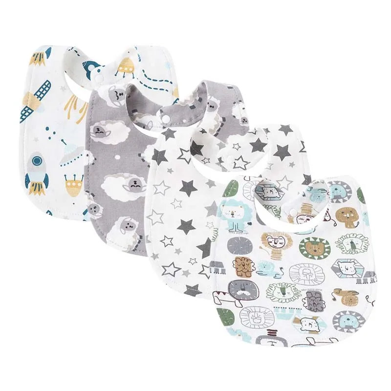 Baberos de algodón para bebé recién nacido, toalla de Saliva con estampado bonito para niños y niñas, paños sólidos para eructar, accesorios de alimentación, 1/4 Uds.