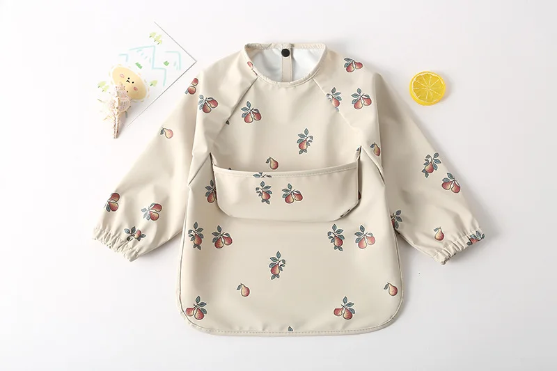 Comprar Baberos de alimentación para bebés con mangas largas, delantales de Babero con estampado de dibujos animados, fáciles de limpiar, resistentes al agua
