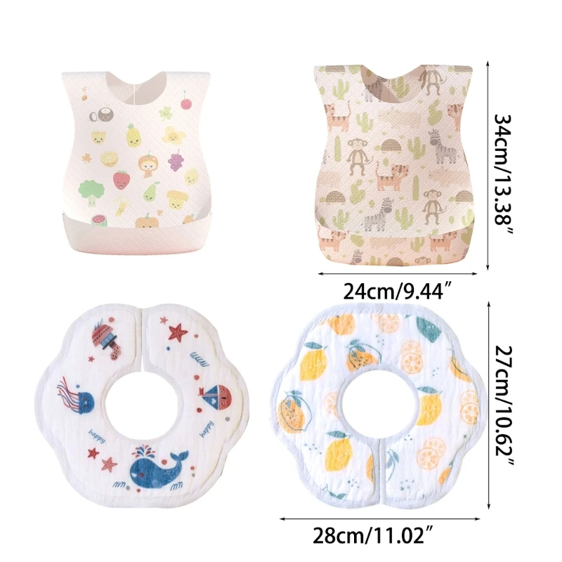 Perfecto para los padres durante los viajes o la alimentación, estos Baberos desechables están diseñados para bebés de 3 meses en adelante.
