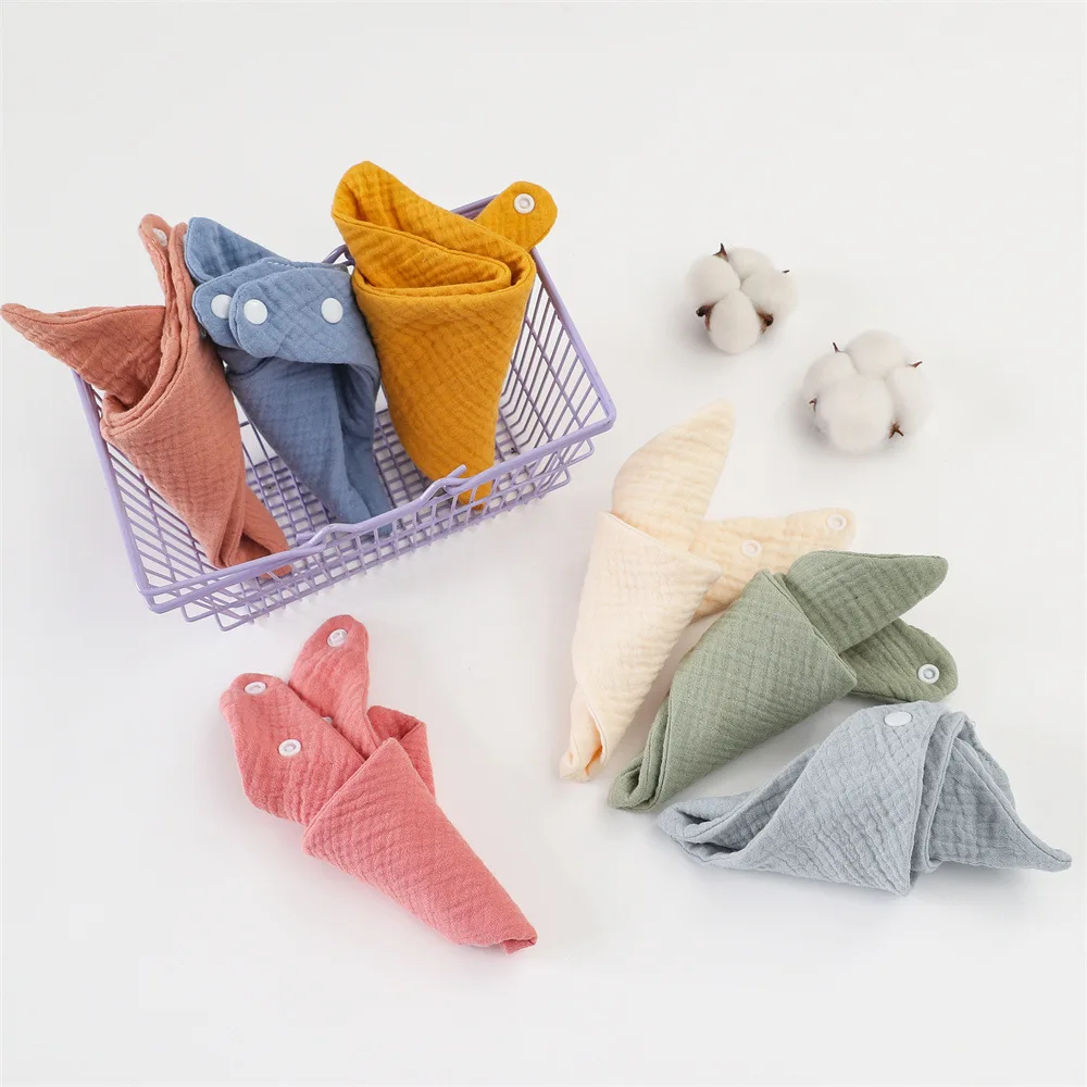 Baberos para bebé, baberos suaves y absorbentes para comer, con cierre de botón, colores mezclados, ideales para bebés y niños pequeños, Baberos sólidos, 3 uds.