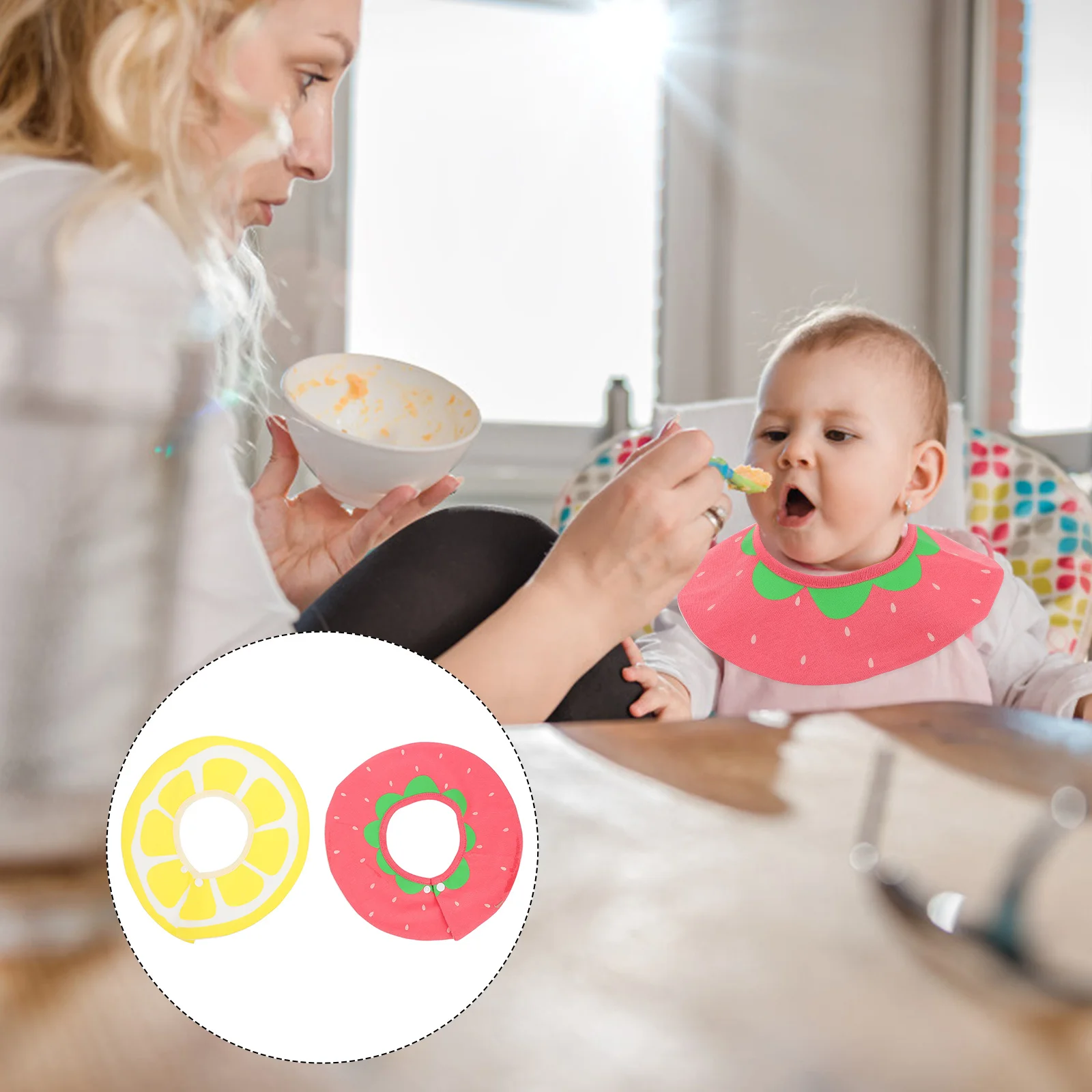 23,50X23.50X0,20cm/9,24X9.24X0,08 pulgadas.- Materiales de alta calidad y buena artesanía, durabilidad y practicidad.Baberos giratorios para bebés
