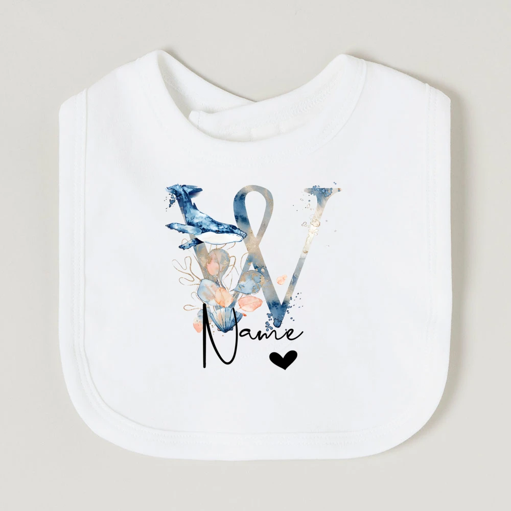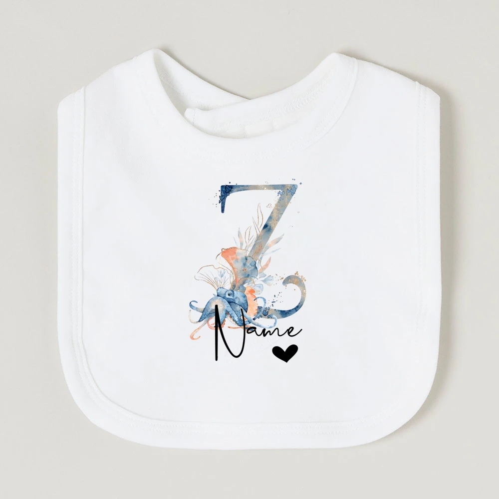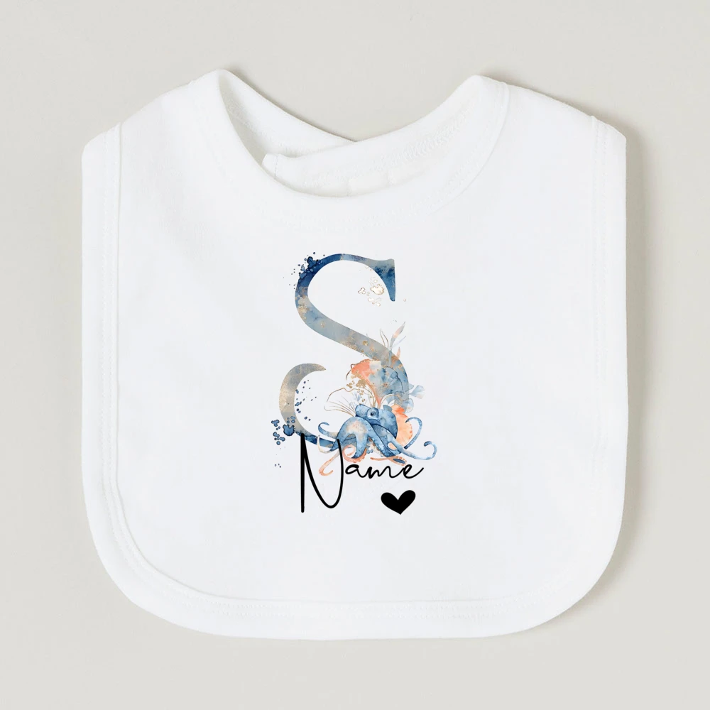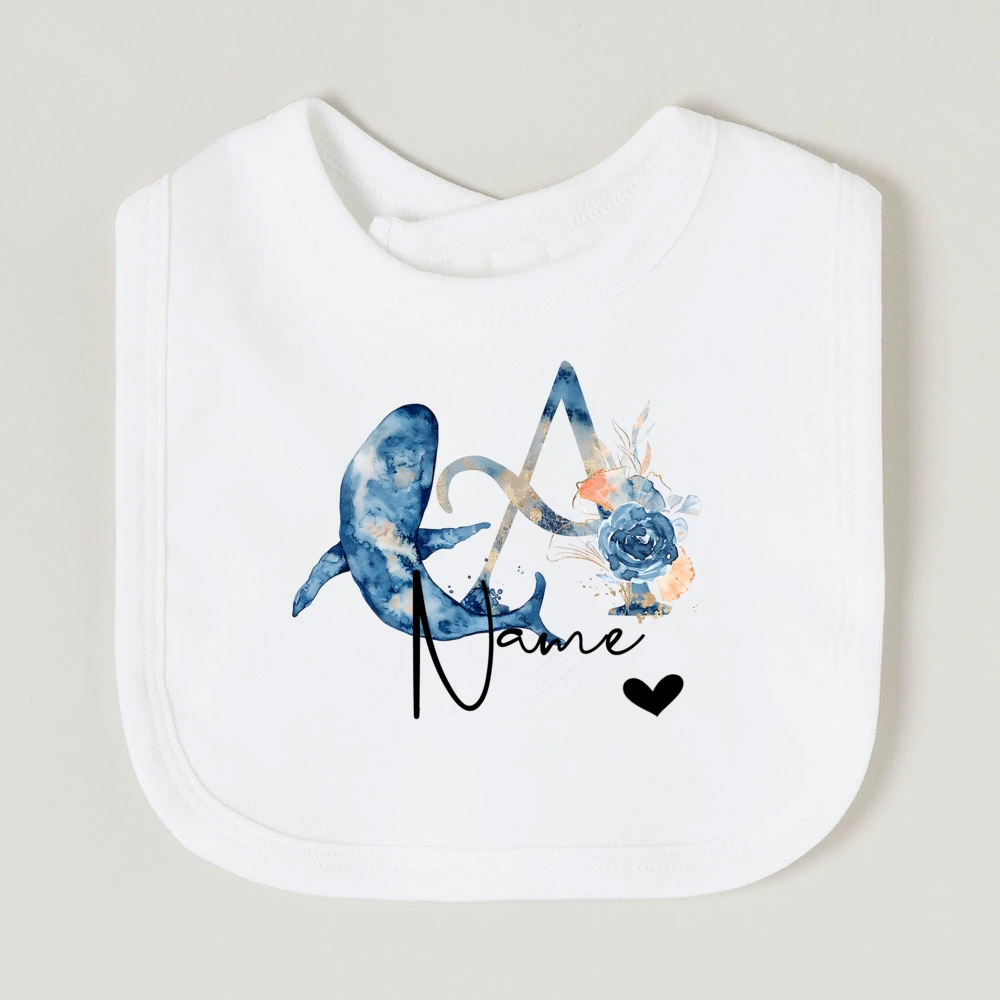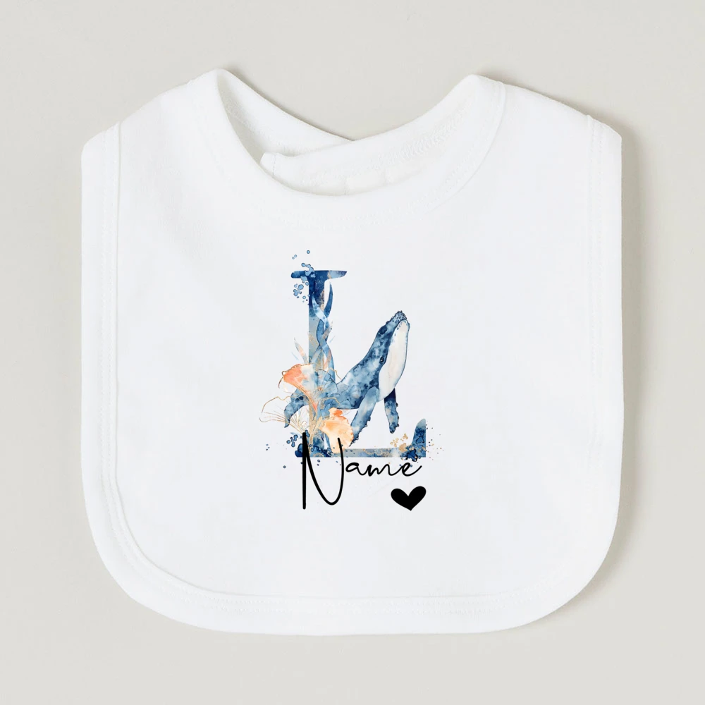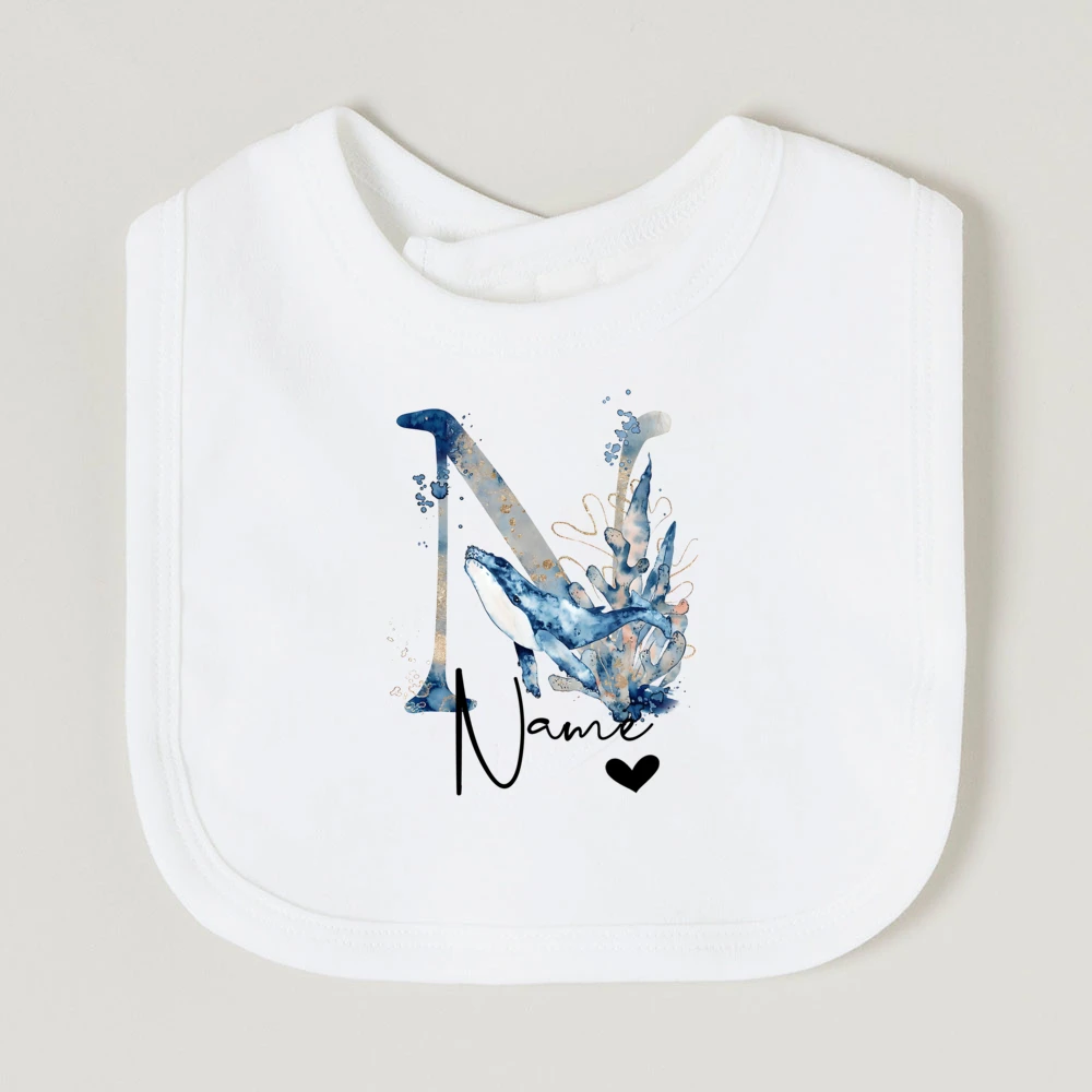 Comprar Baberos de bebé personalizados con nombre de letra, babero de algodón para niño y niña, estampado de animales del océano, toalla para Saliva para recién nacido, babero, regalo de ducha de cumpleaños infantil