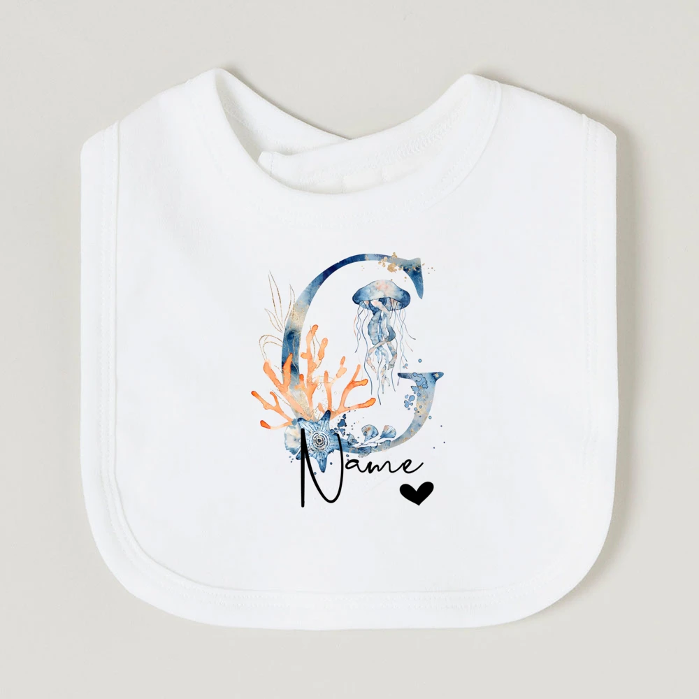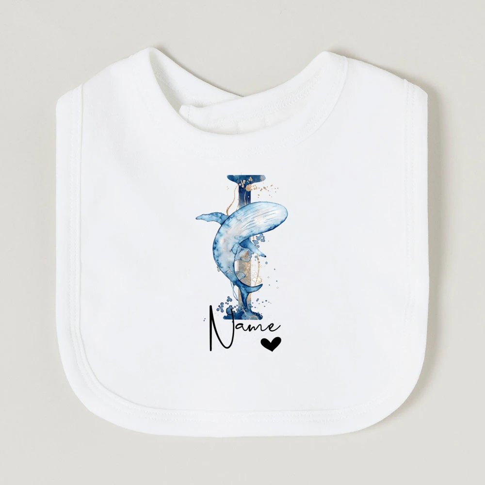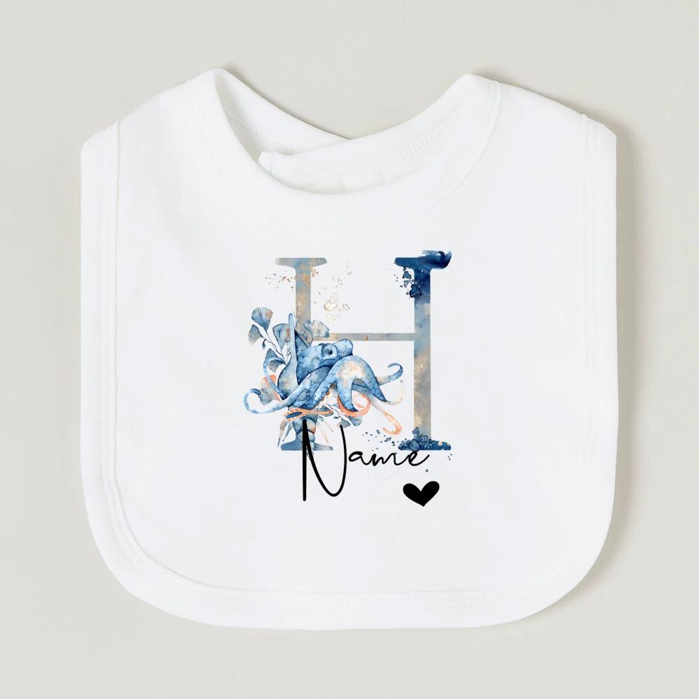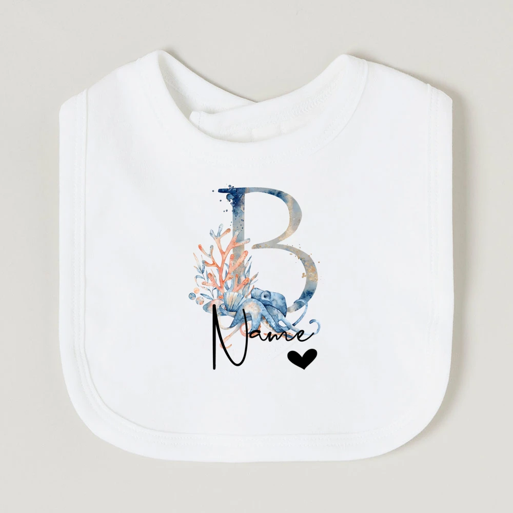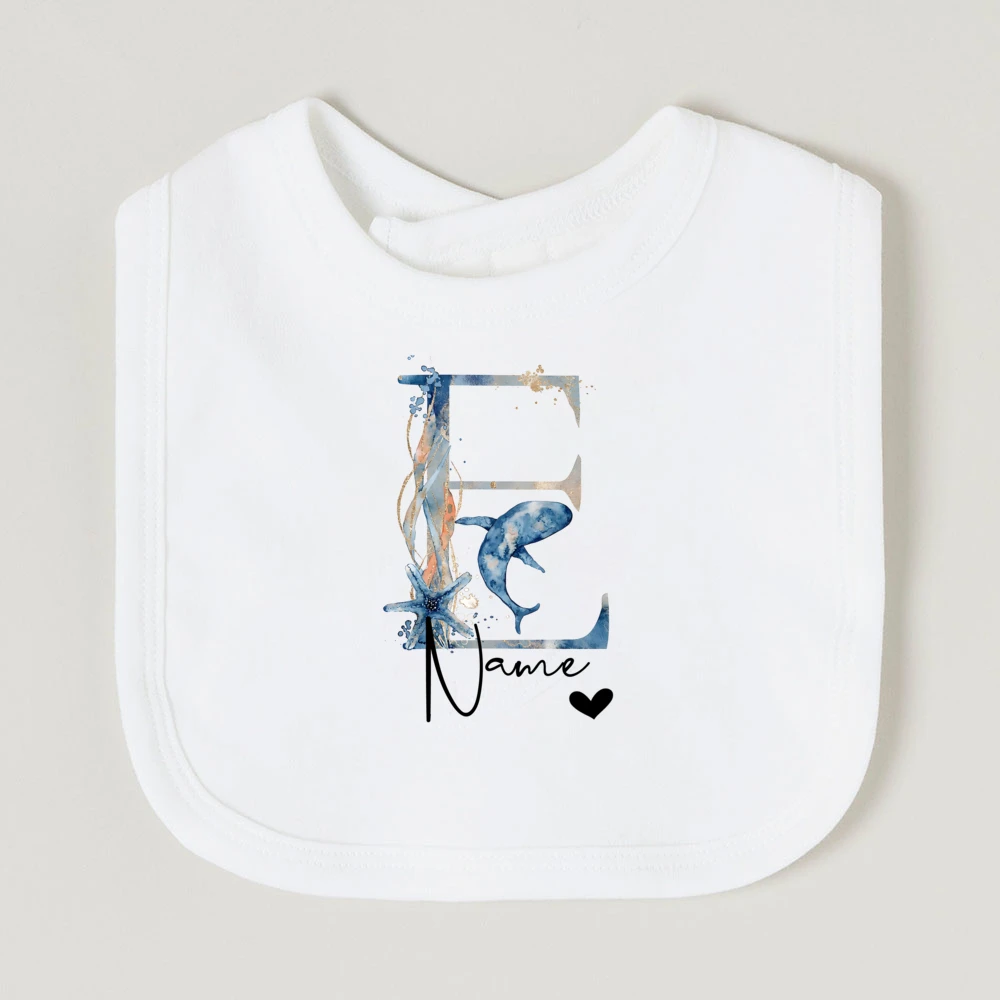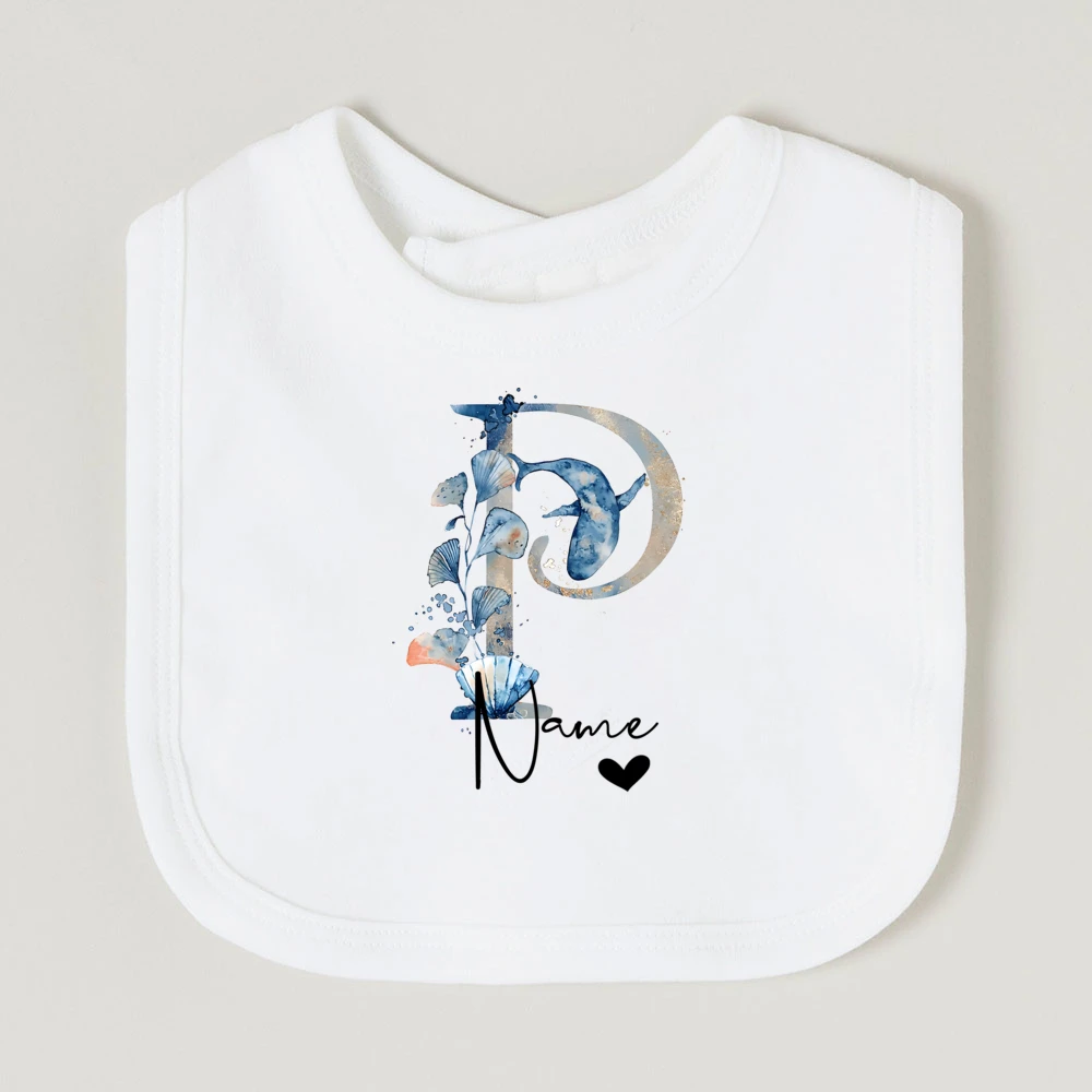 Comprar Baberos de bebé personalizados con nombre de letra, babero de algodón para niño y niña, estampado de animales del océano, toalla para Saliva para recién nacido, babero, regalo de ducha de cumpleaños infantil
