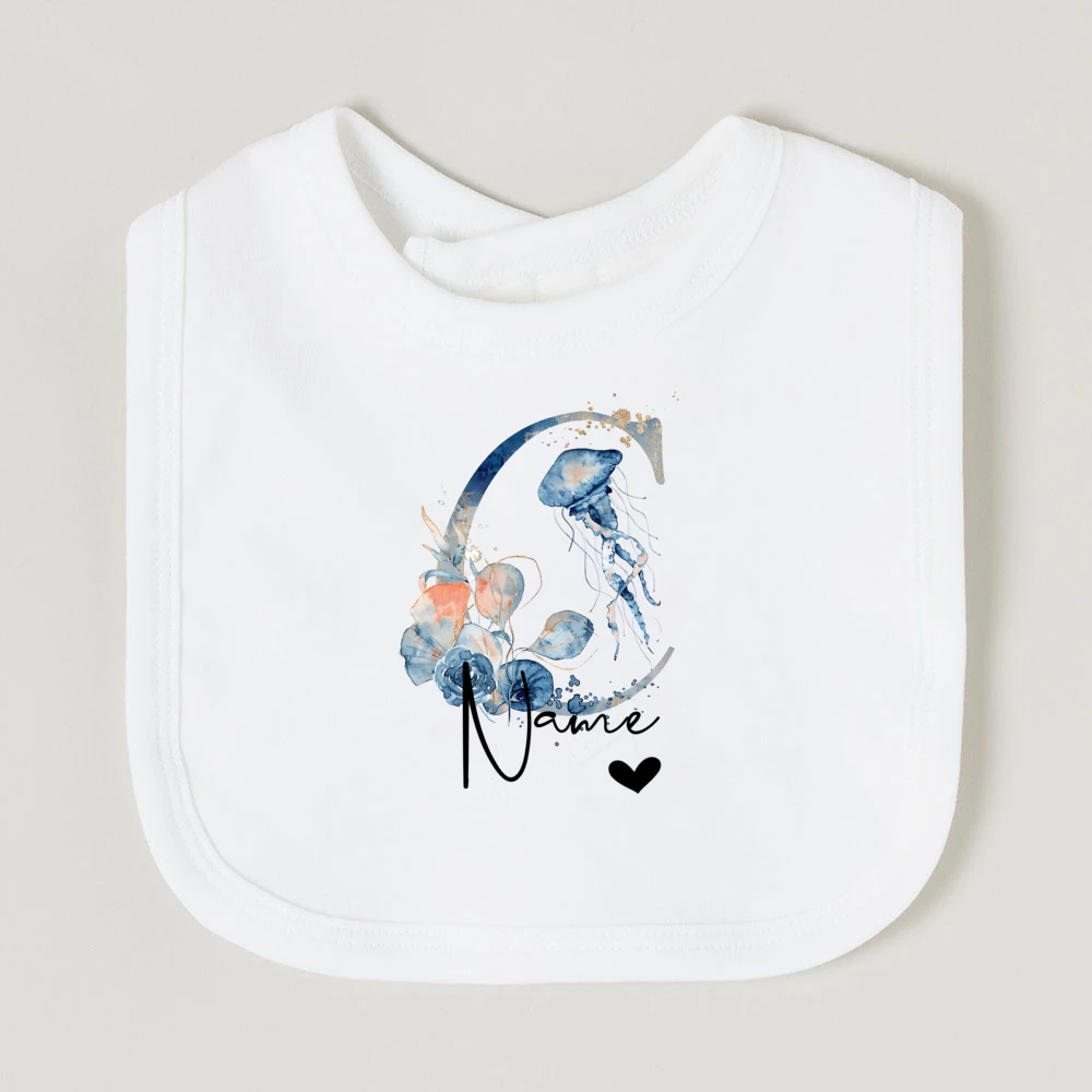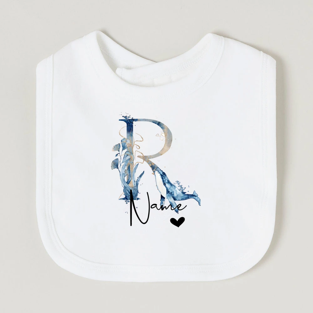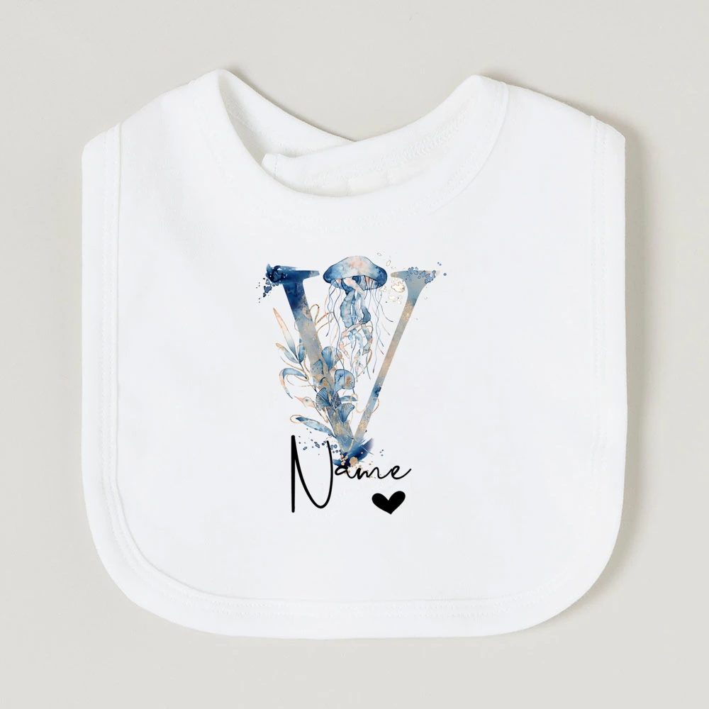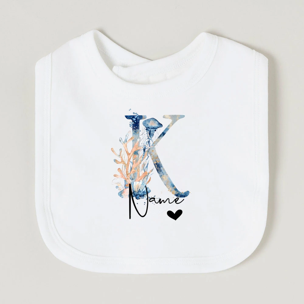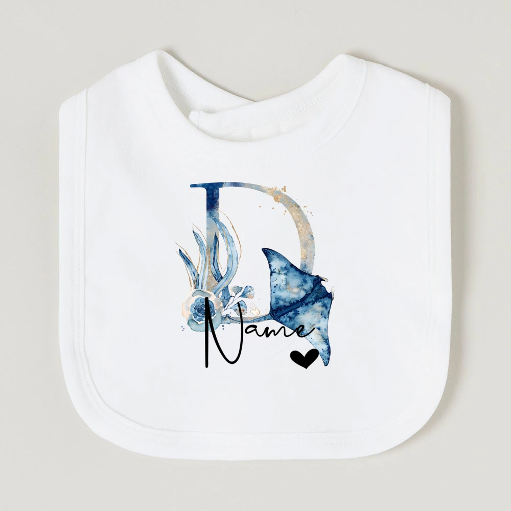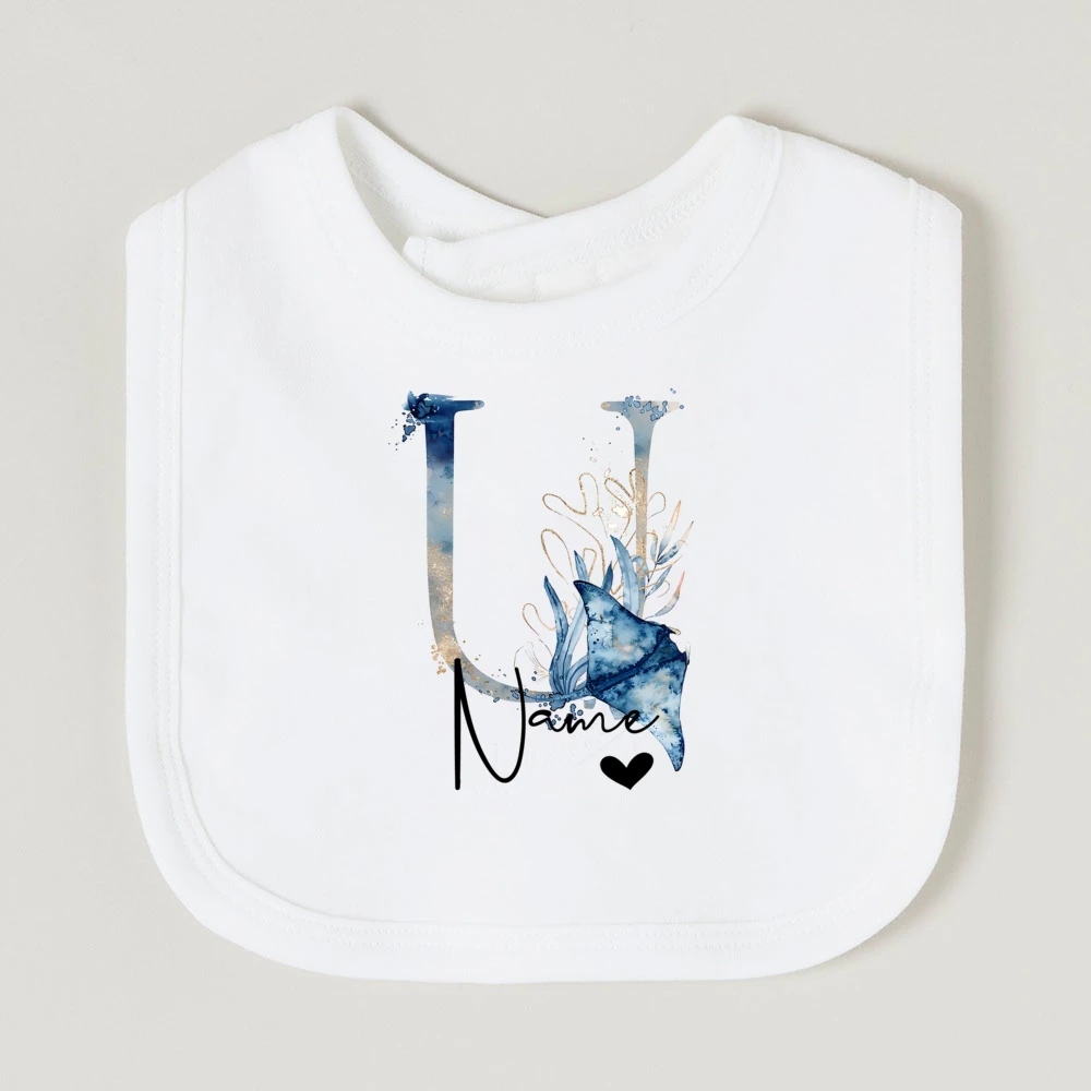 Comprar Baberos de bebé personalizados con nombre de letra, babero de algodón para niño y niña, estampado de animales del océano, toalla para Saliva para recién nacido, babero, regalo de ducha de cumpleaños infantil
