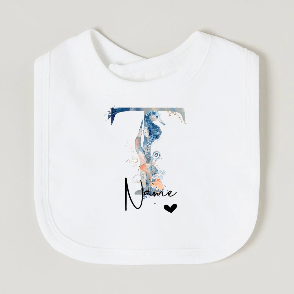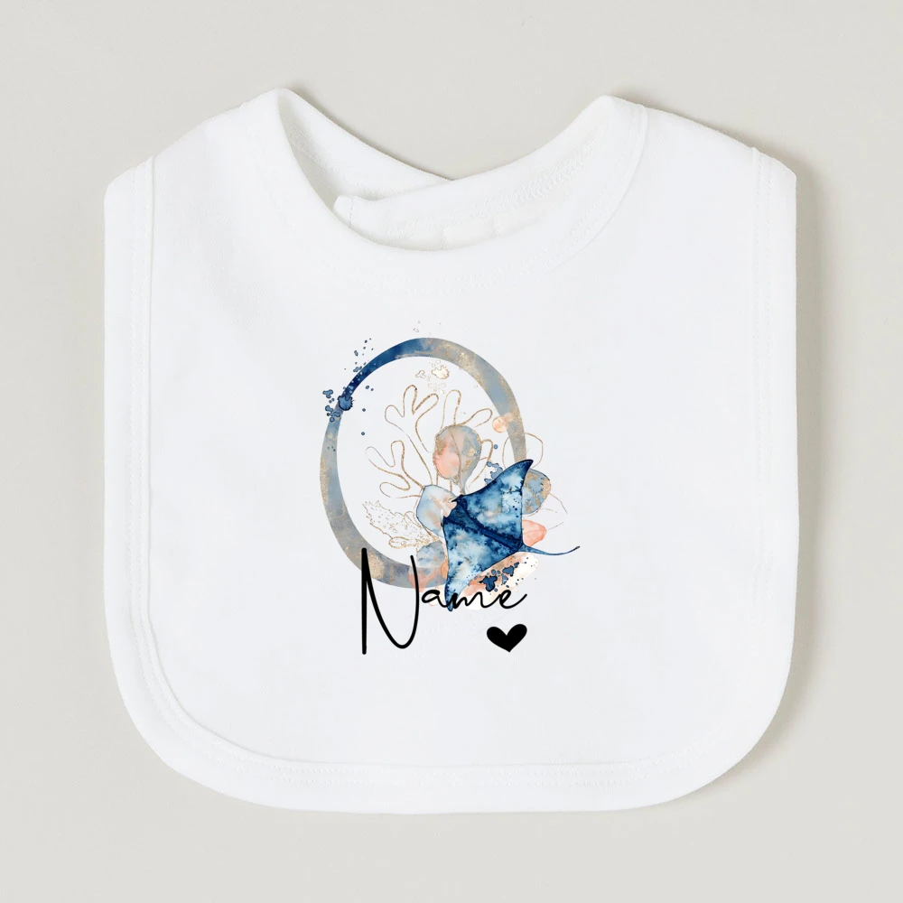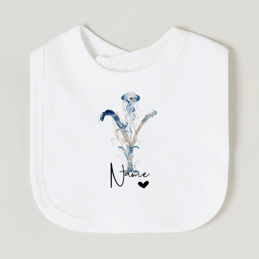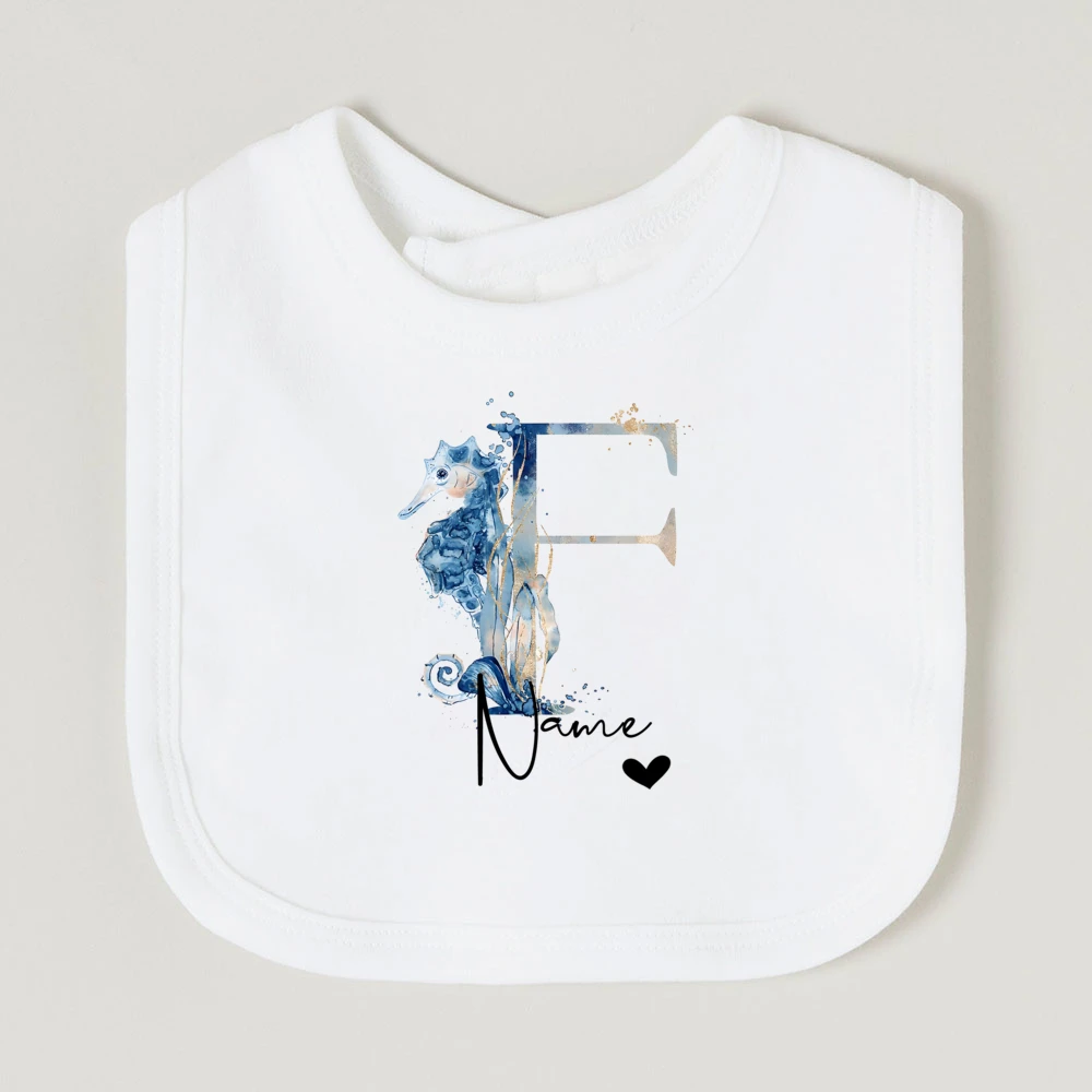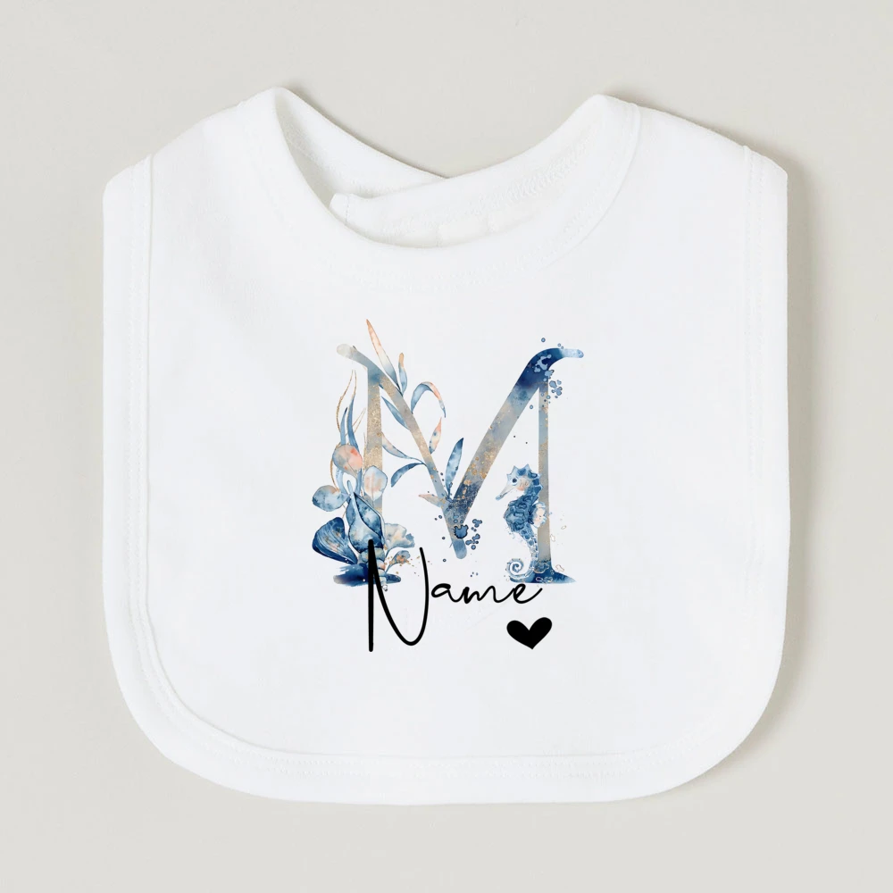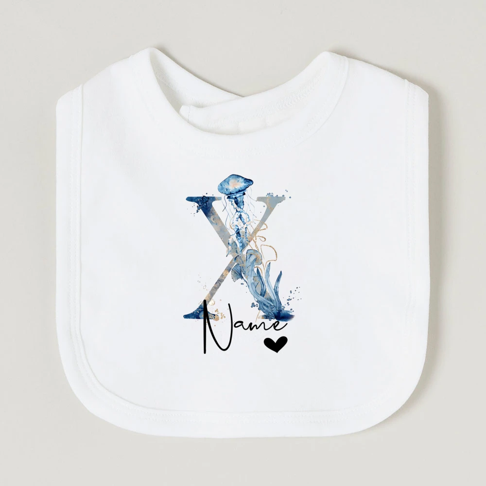 Comprar Baberos de bebé personalizados con nombre de letra, babero de algodón para niño y niña, estampado de animales del océano, toalla para Saliva para recién nacido, babero, regalo de ducha de cumpleaños infantil
