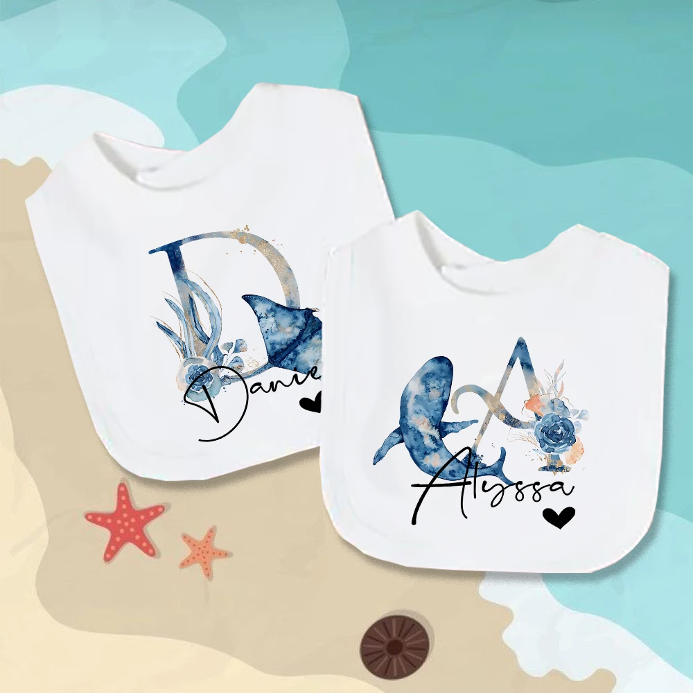 Comprar Baberos de bebé personalizados con nombre de letra, babero de algodón para niño y niña, estampado de animales del océano, toalla para Saliva para recién nacido, babero, regalo de ducha de cumpleaños infantil