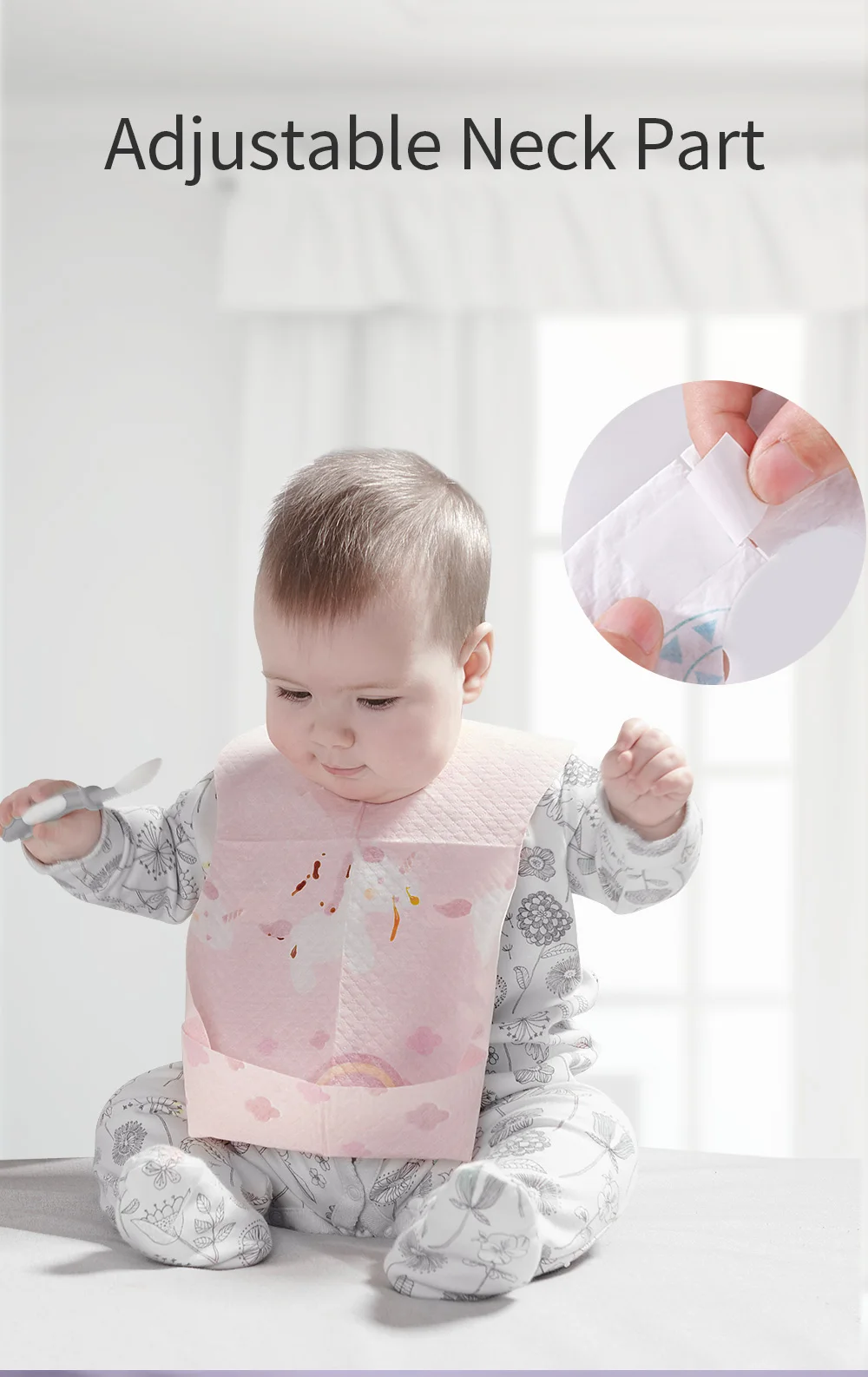 BOLSILLOS DESMONTABLES PARA NIÑOS DE BEBÉ: Perfectos para el hogar o mientras viaja, los tapetes convierten casi cualquier superficie en un lugar limpio y seguro para refrigerar o tomar una comida sin preocuparse por las bacterias de la suciedad o los productos químicos de limpieza agresivos MATERIAL SUAVE Y CÓMODO: Hecho de una combinación de tela, papel de seda y película impermeable para brindar resistencia duradera al desgarro y protección contra fugas y al mismo tiempo sentirse cómodo cuando se usa DISEÑO SEGUR Para limpiarlo, simplemente pliegue y tire el babero una vez que haya terminado su hijo. No se requiere limpieza ni secado adicional, como con baberos de tela generales.