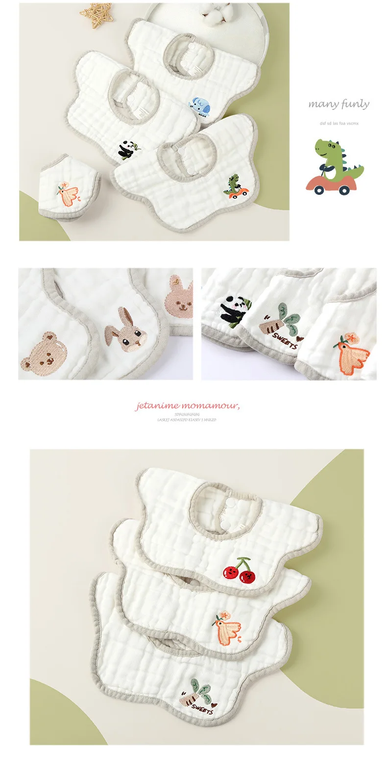 Comprar Baberos de gasa de algodón de 8 capas para bebé, ropa suave con bordado de dibujos animados para eructar, toalla de Saliva para alimentación de niños y niñas, novedad