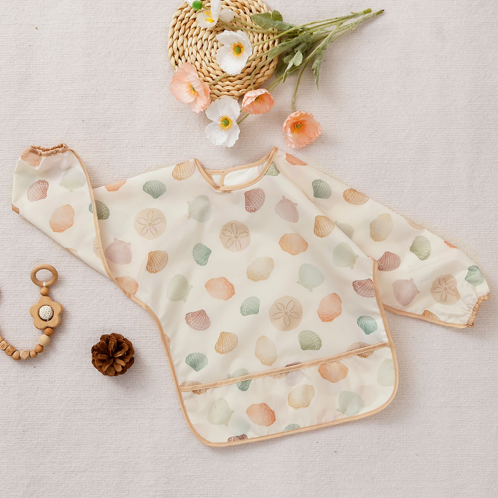 •Cuenta con un cierre de lazo ajustable y un bolsillo para guardar todo, que mantiene las cosas alejadas del suelo.Puede ser toda la cobertura de alimentación de la ropa y puede funcionar como bata artística.Y el diseño tiene mangas largas, protege a los niños de teñir la ropa, cuando coman, pintan o hacen cualquier otra cosa.