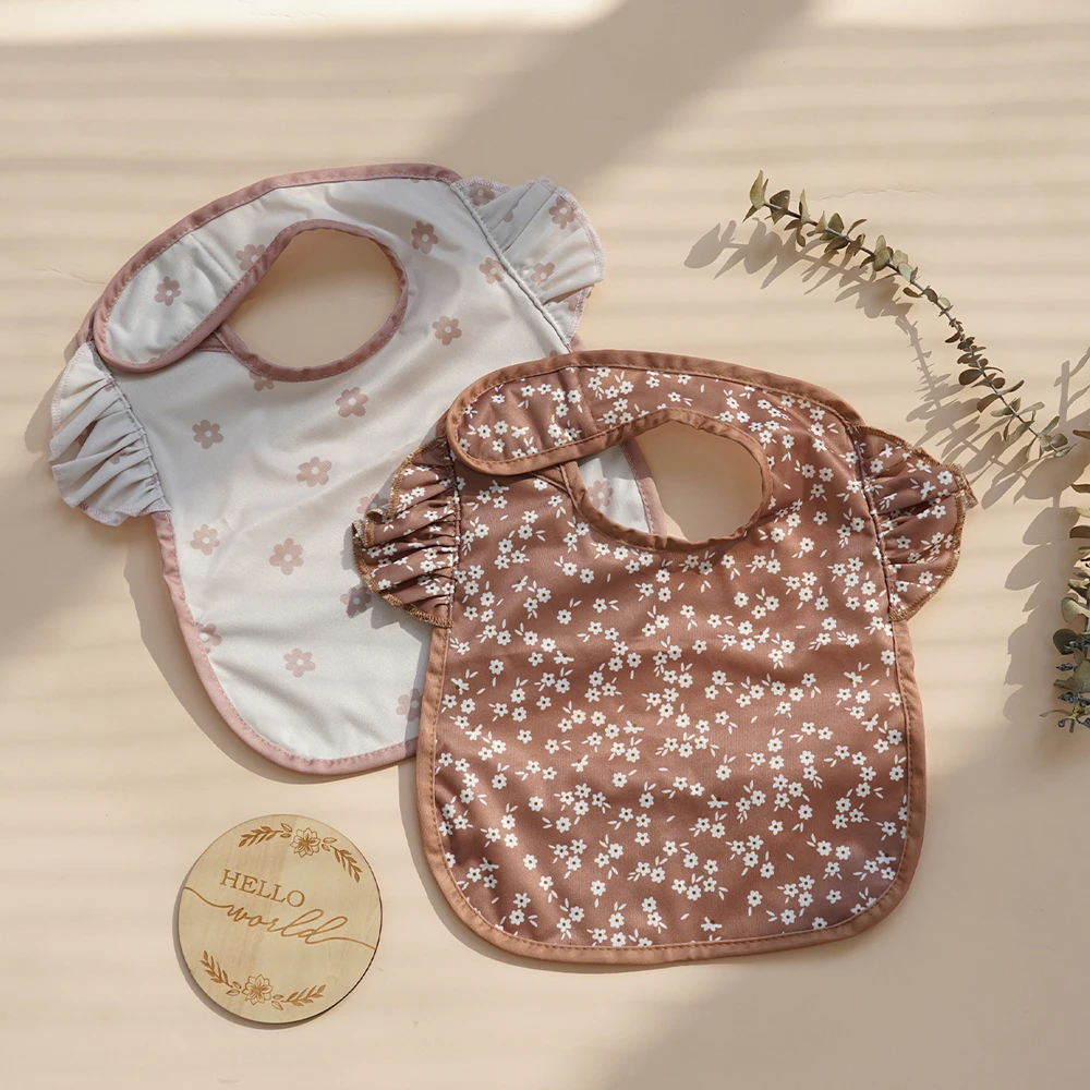 Comprar Baberos impermeables con diseño de flores para bebé, Baberos de alimentación con cinta mágica, 2 unidades
