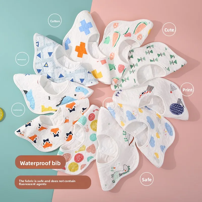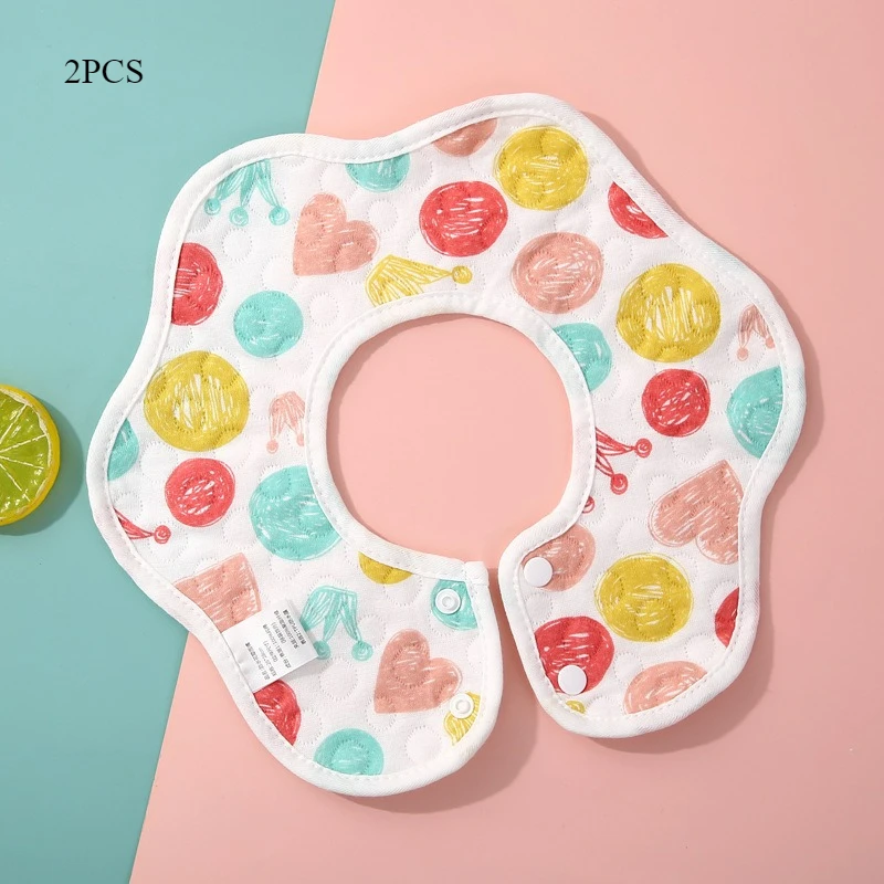 Comprar Baberos impermeables Unisex para bebé, gasa de algodón tejida, Baberos absorbentes con estampado de dibujos animados para bebé con diseño de pétalos, 2 uds.